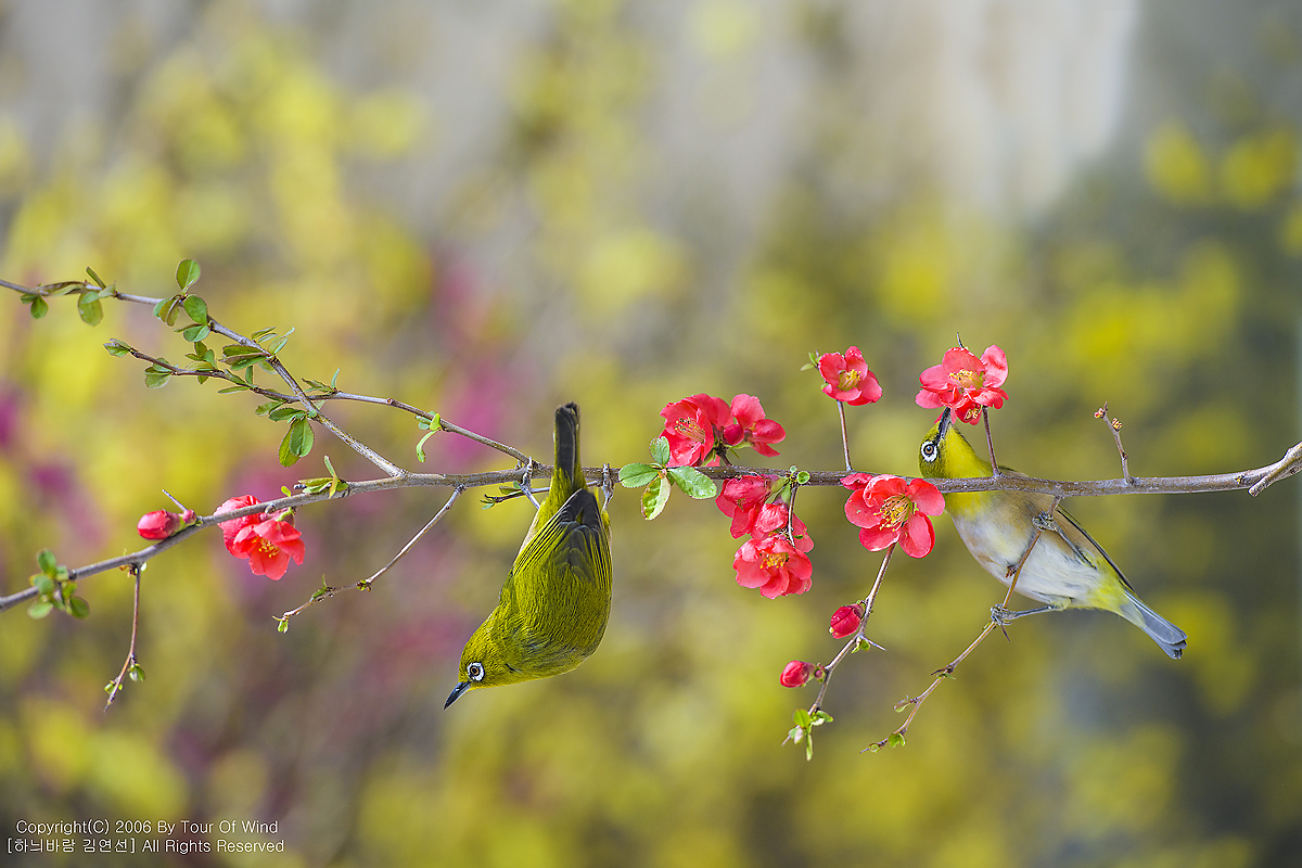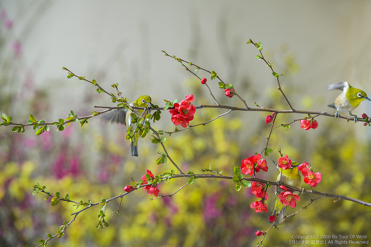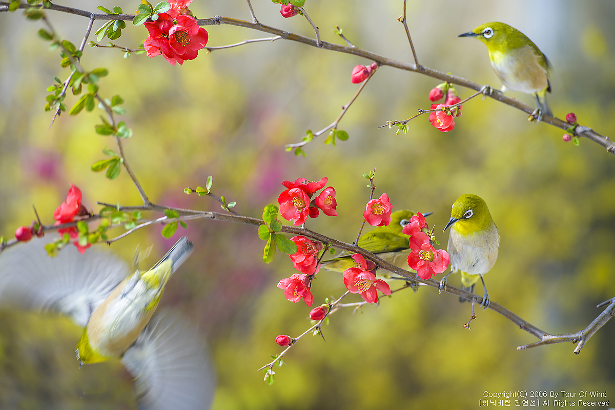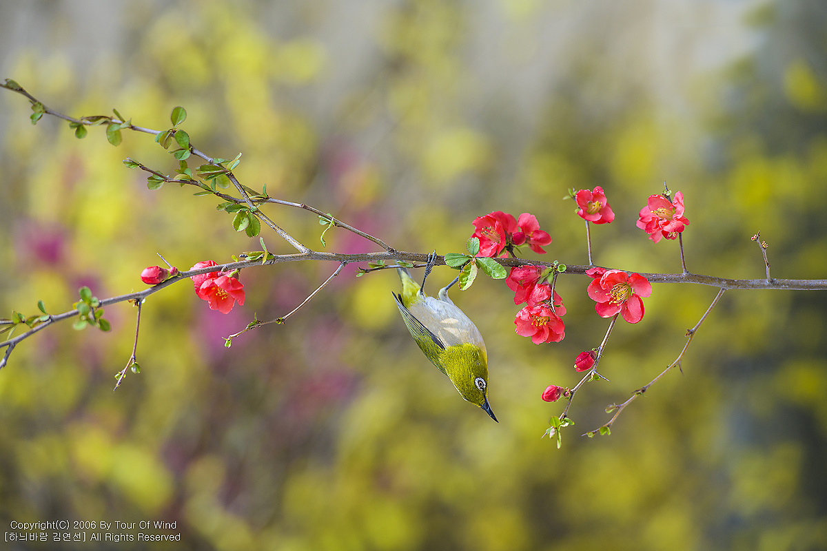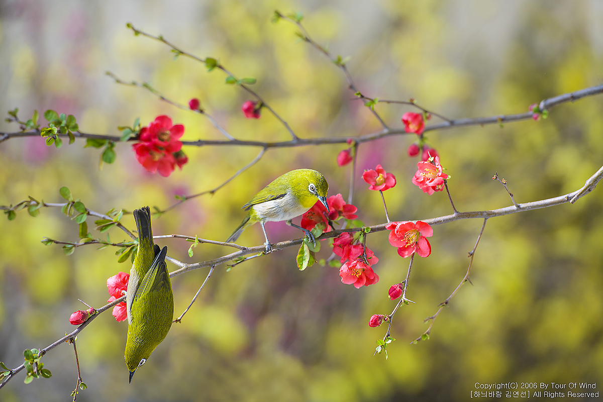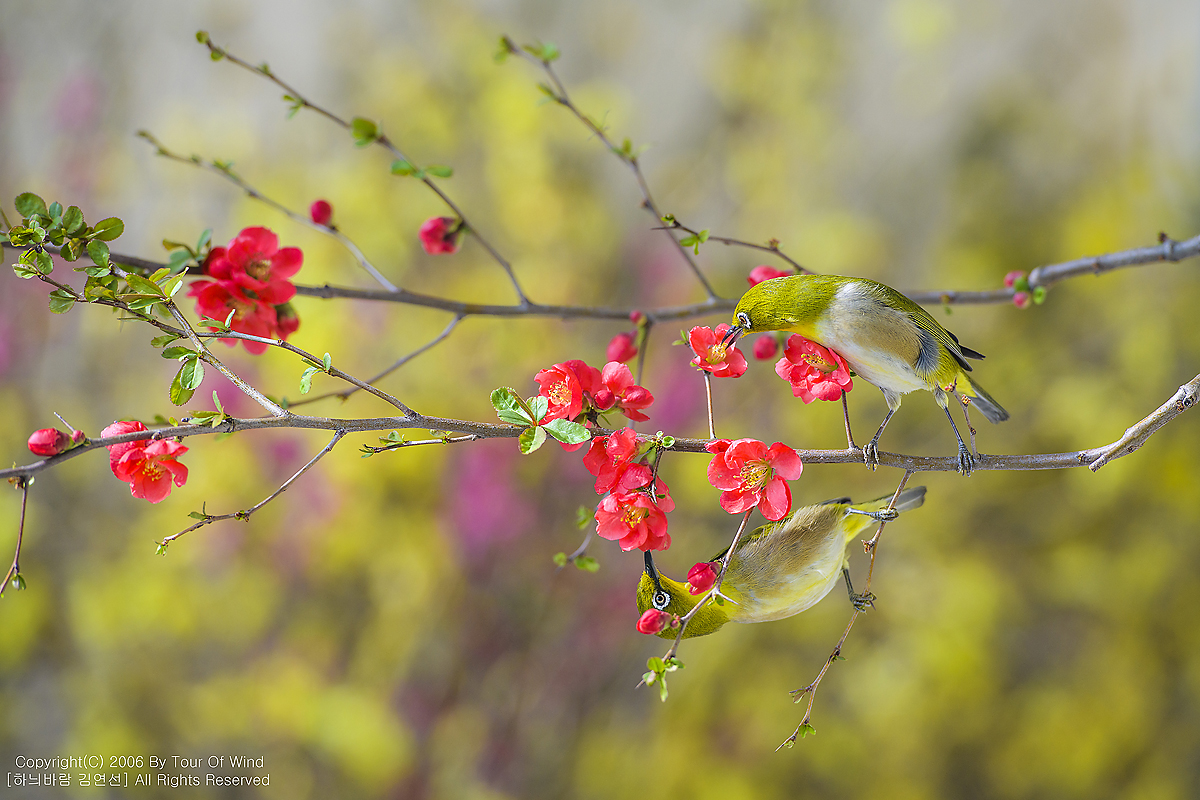 동박새와 명자나무꽃입니다. (2021년 3월 14일)