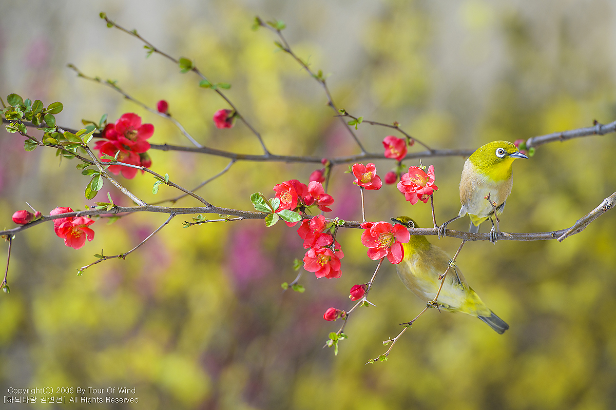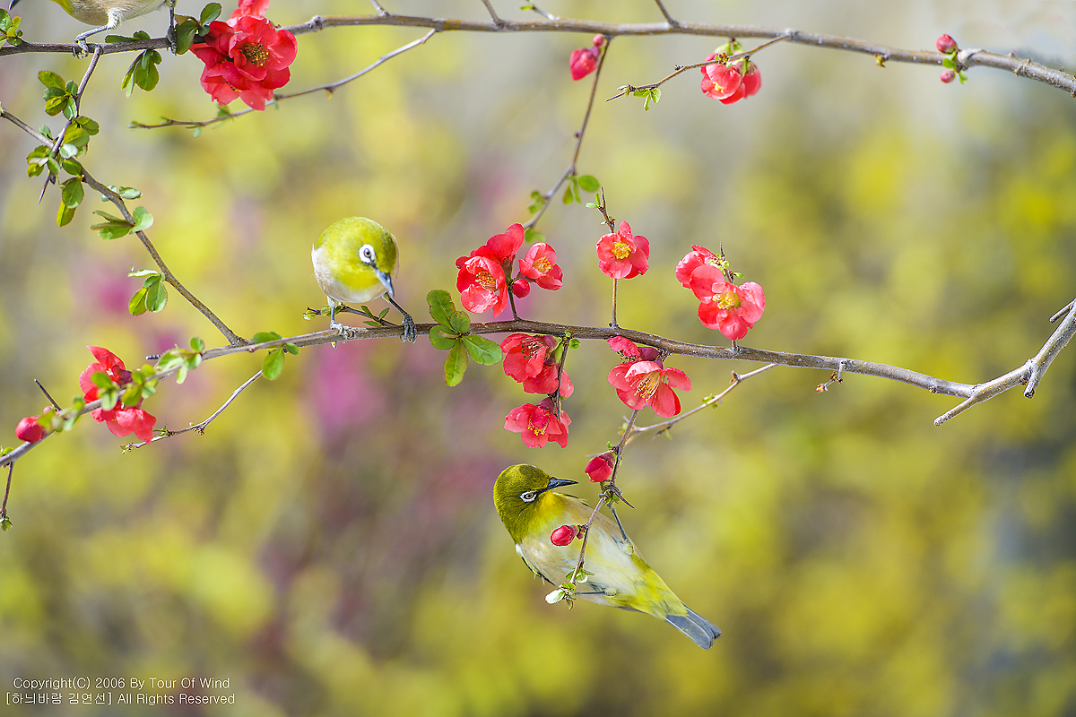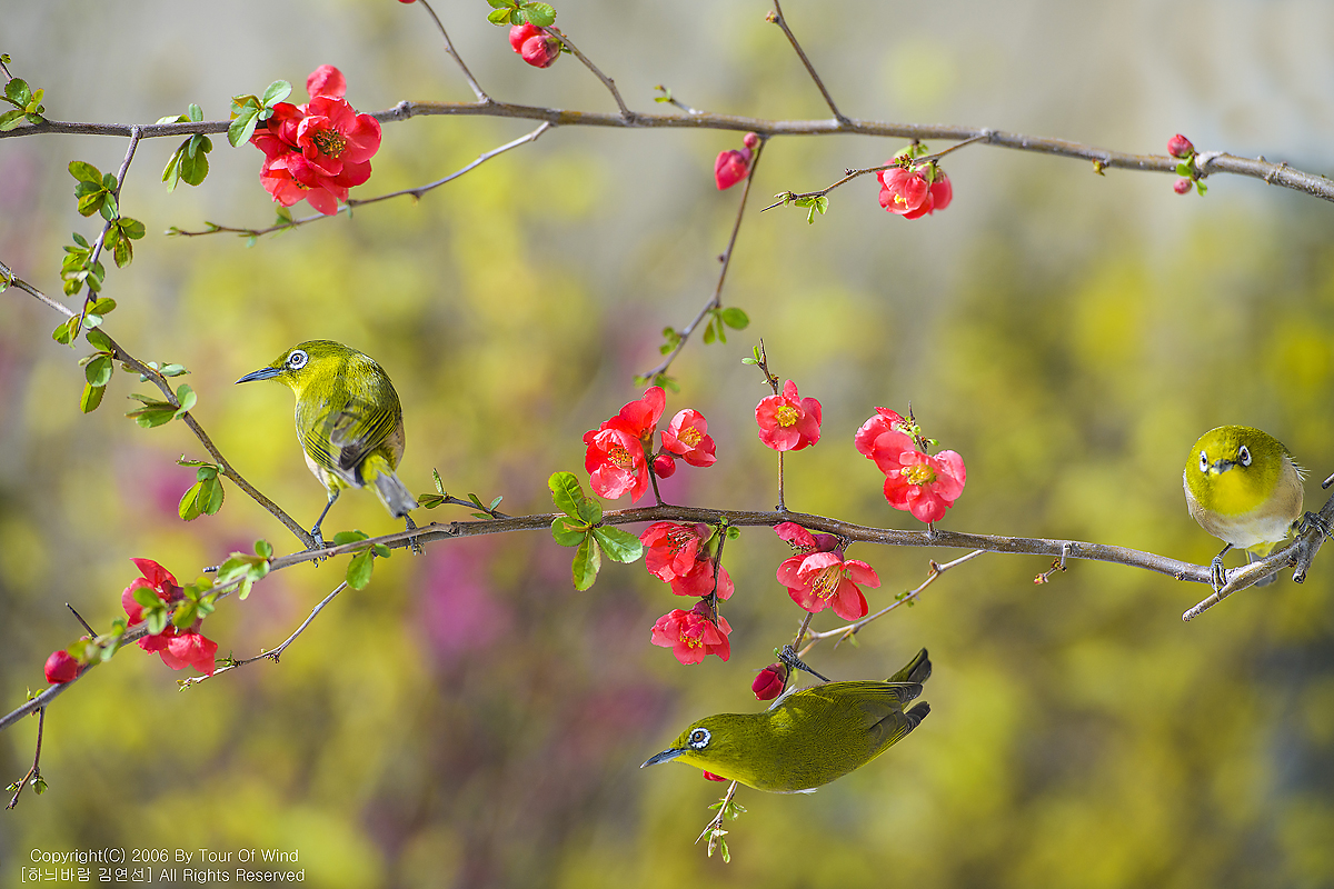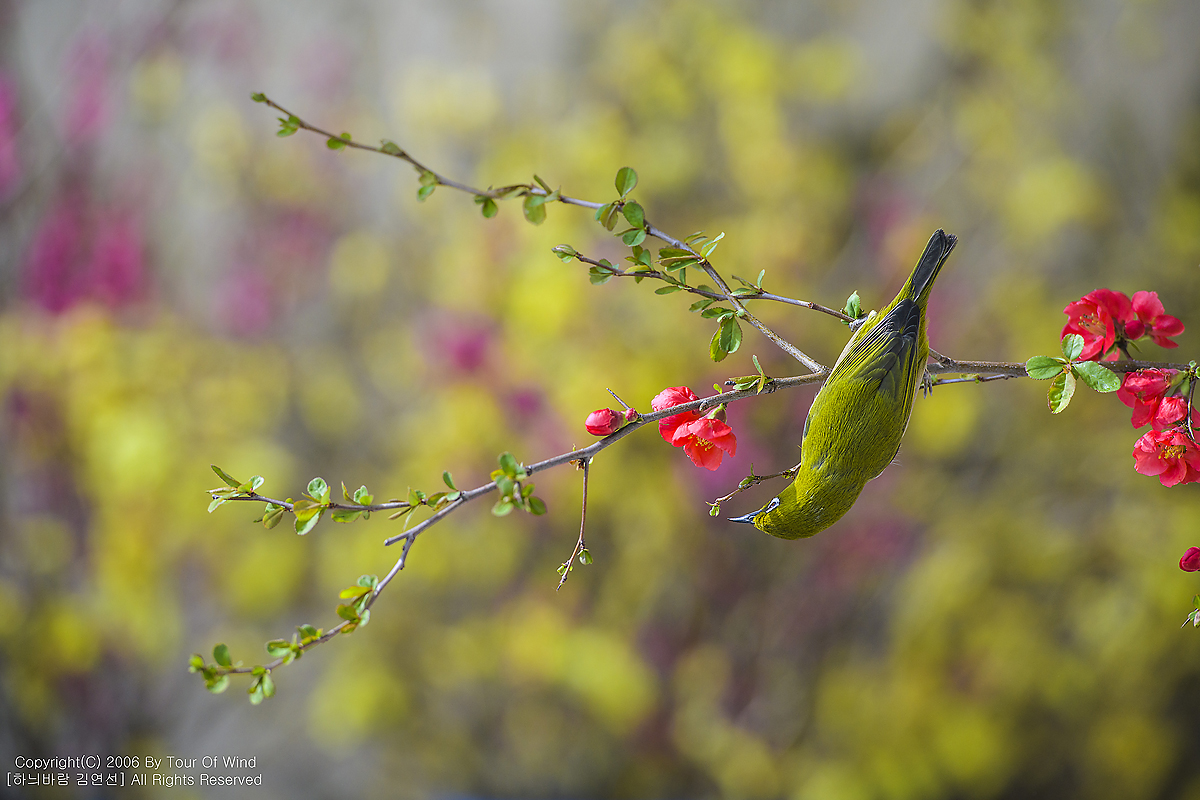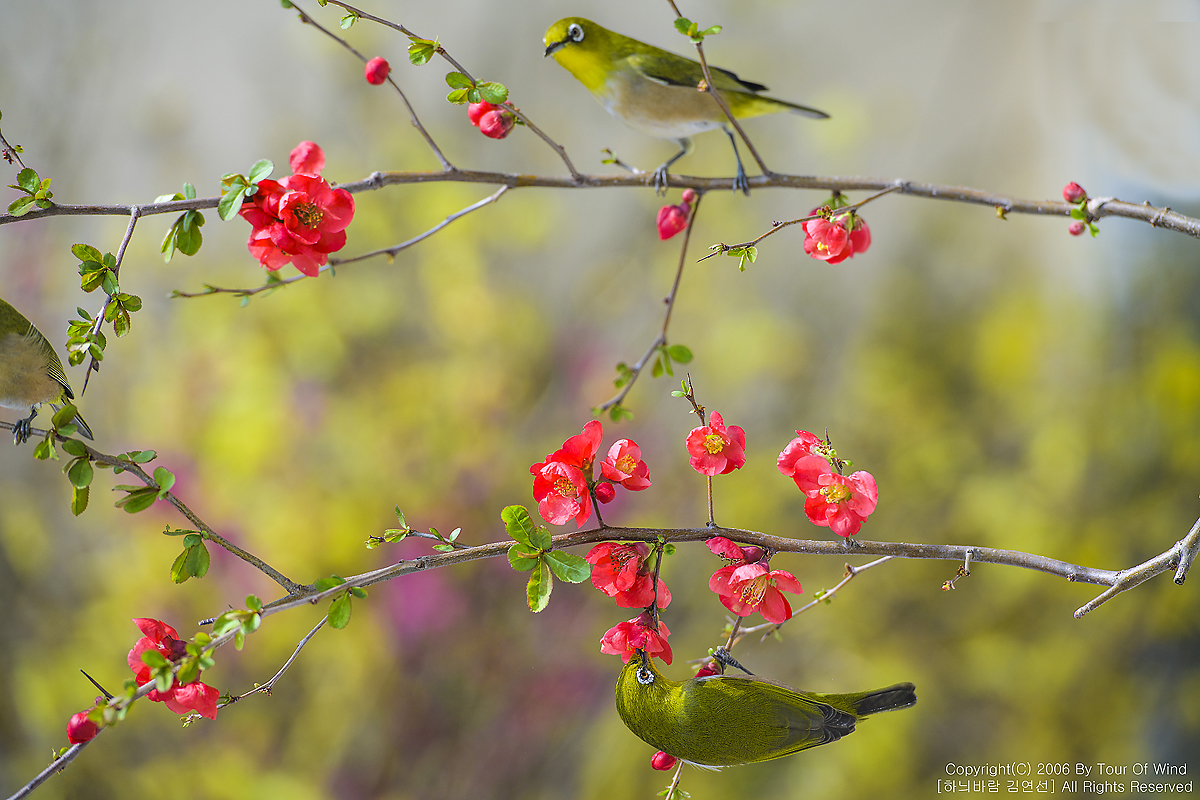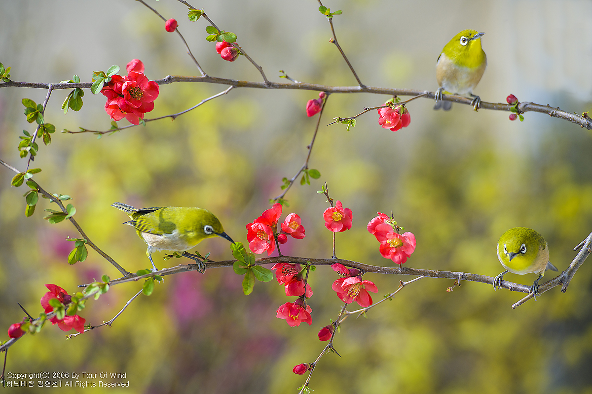 동박새와 명자나무꽃입니다. (2021년 3월 14일)