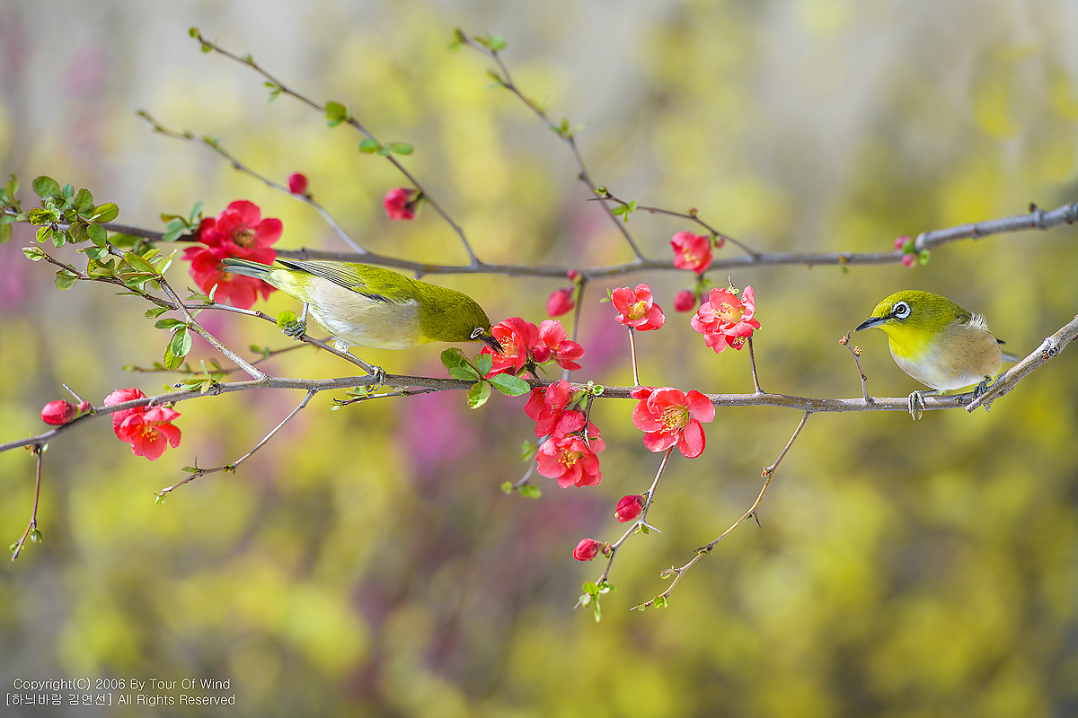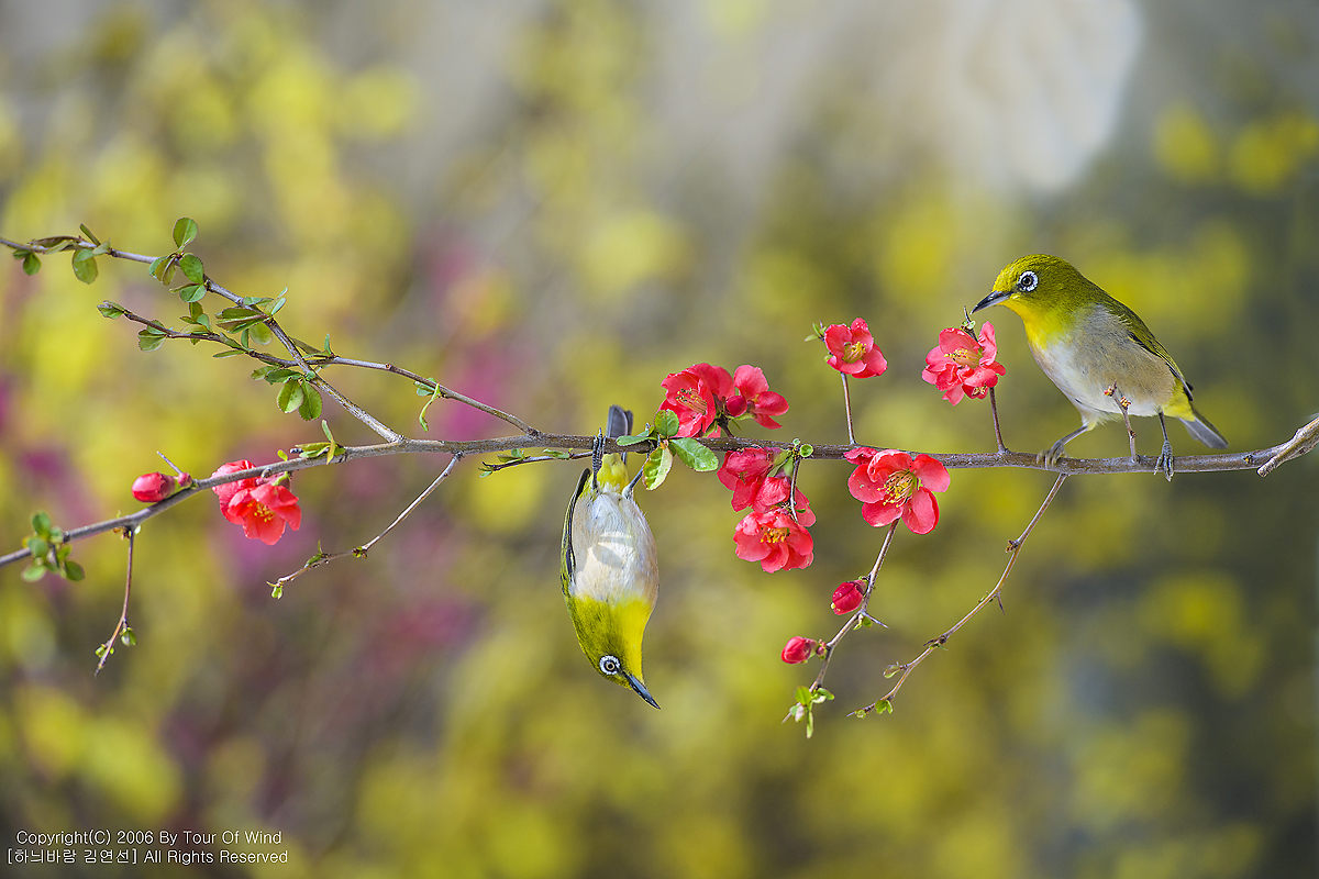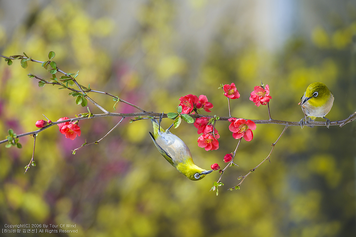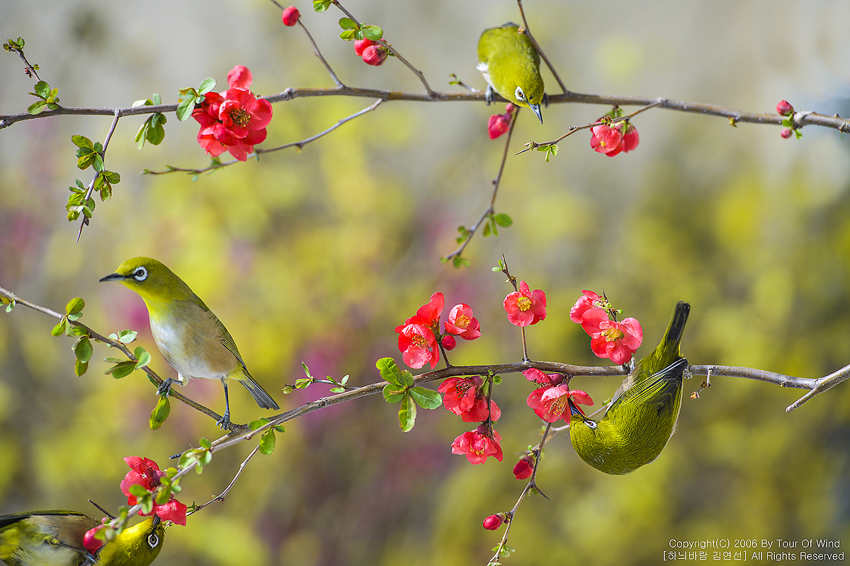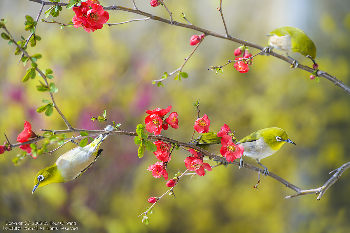 동박새와 명자나무꽃입니다. (2021년 3월 14일)