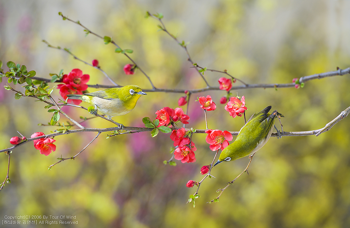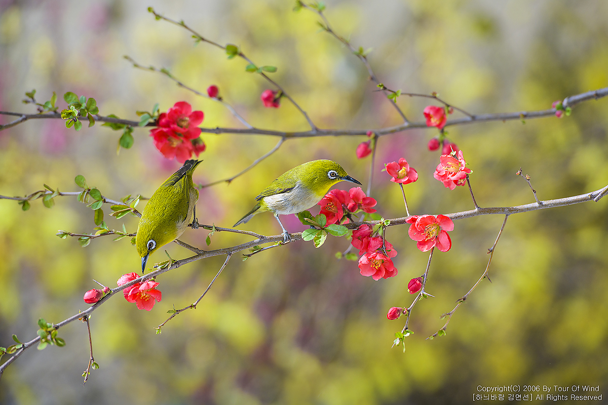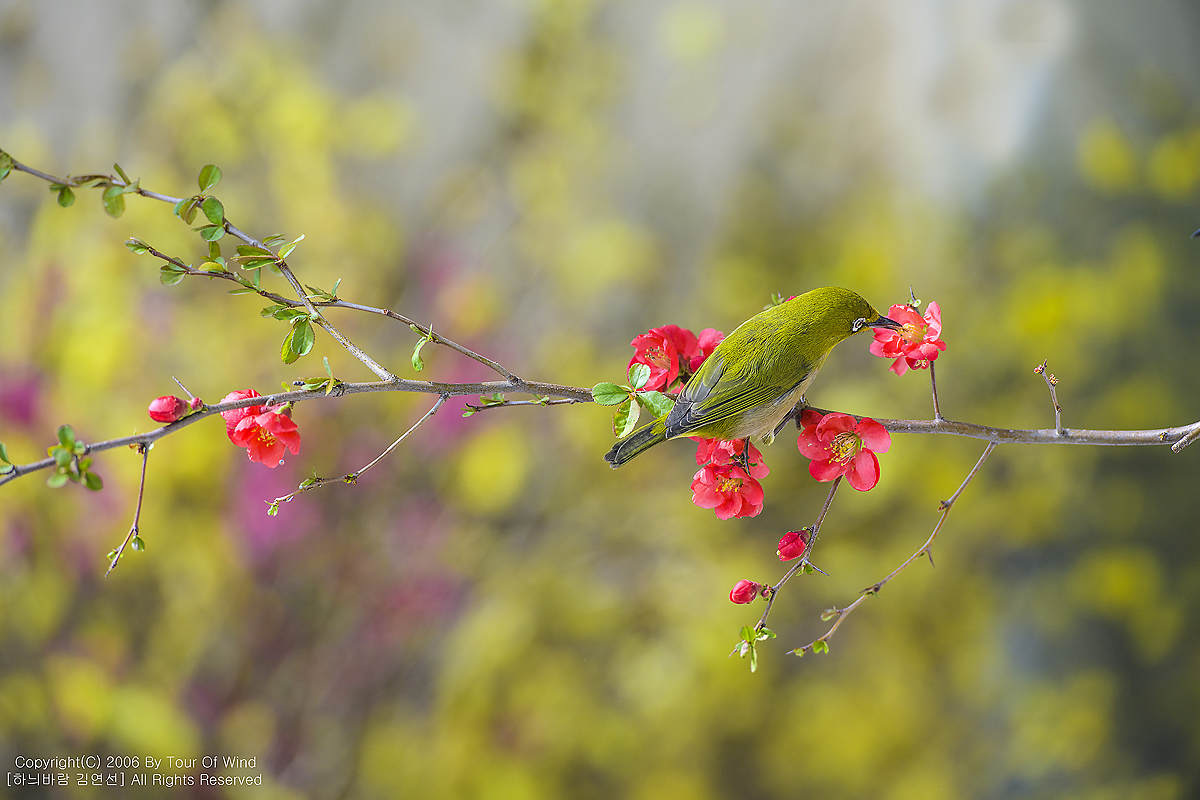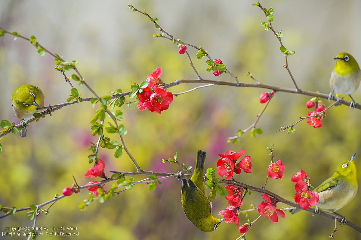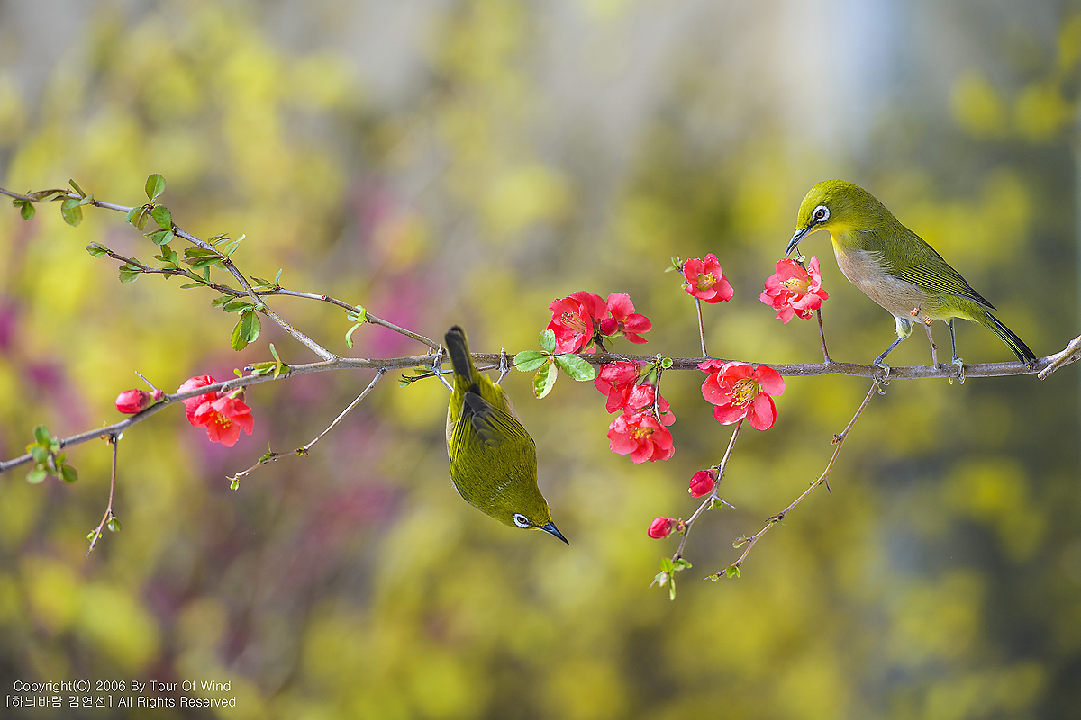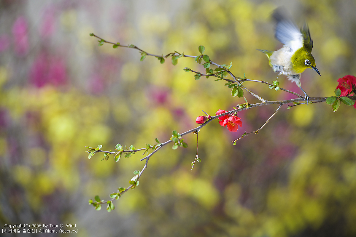 동박새와 명자나무꽃입니다. (2021년 3월 14일)