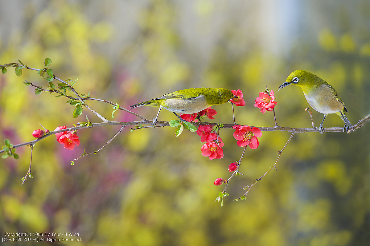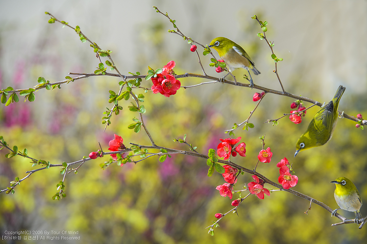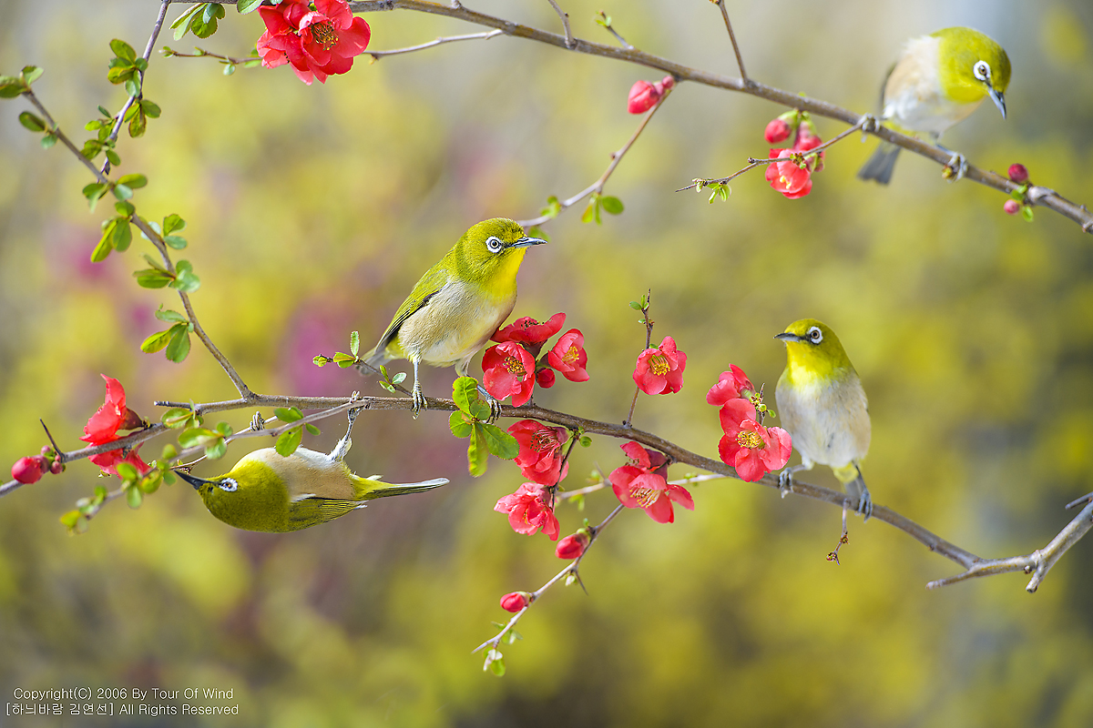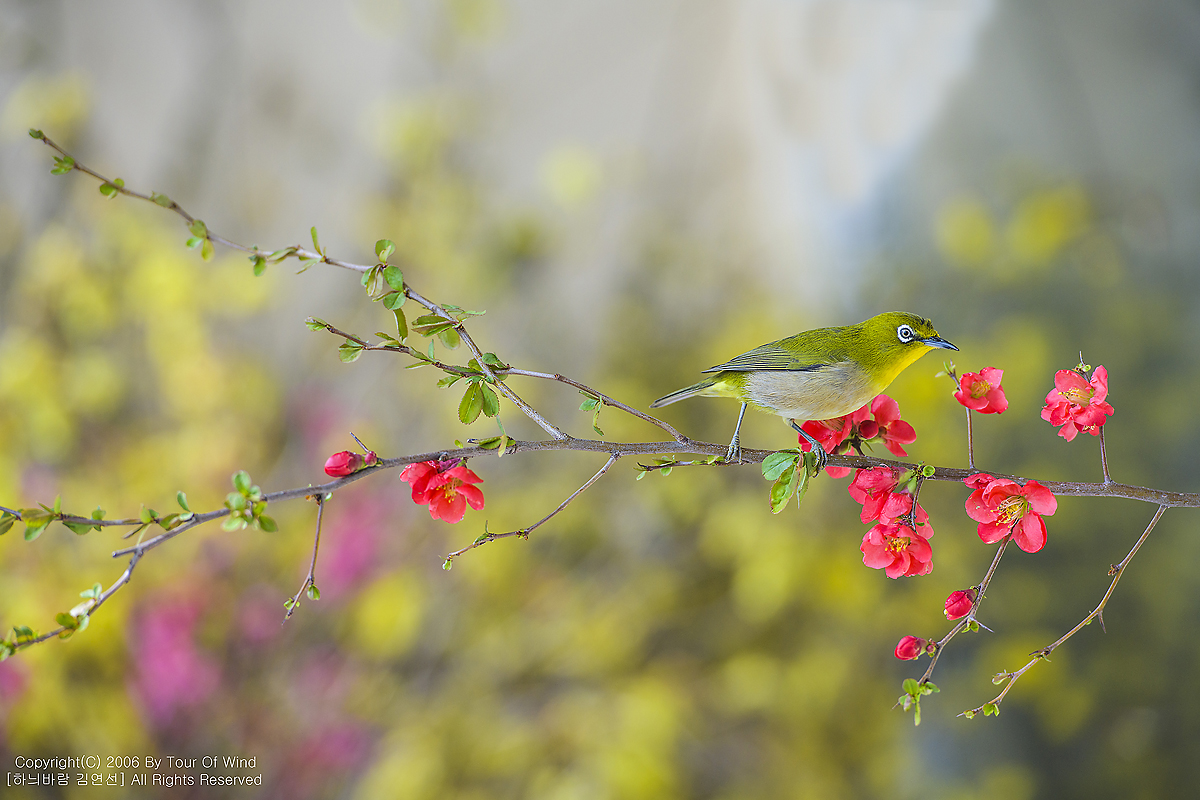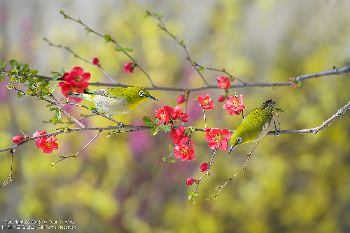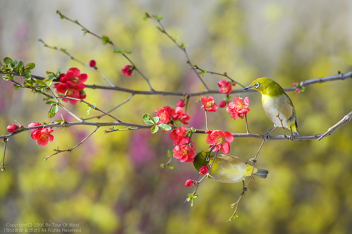 동박새와 명자나무꽃입니다. (2021년 3월 14일)
