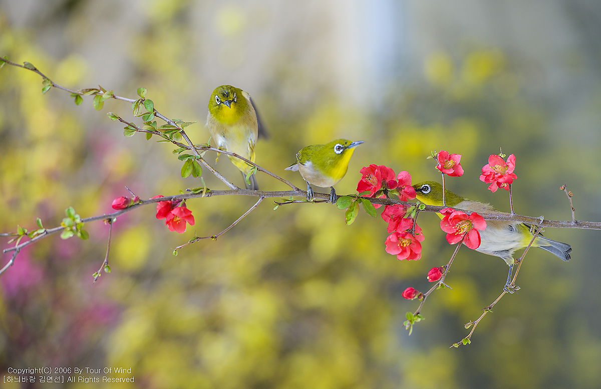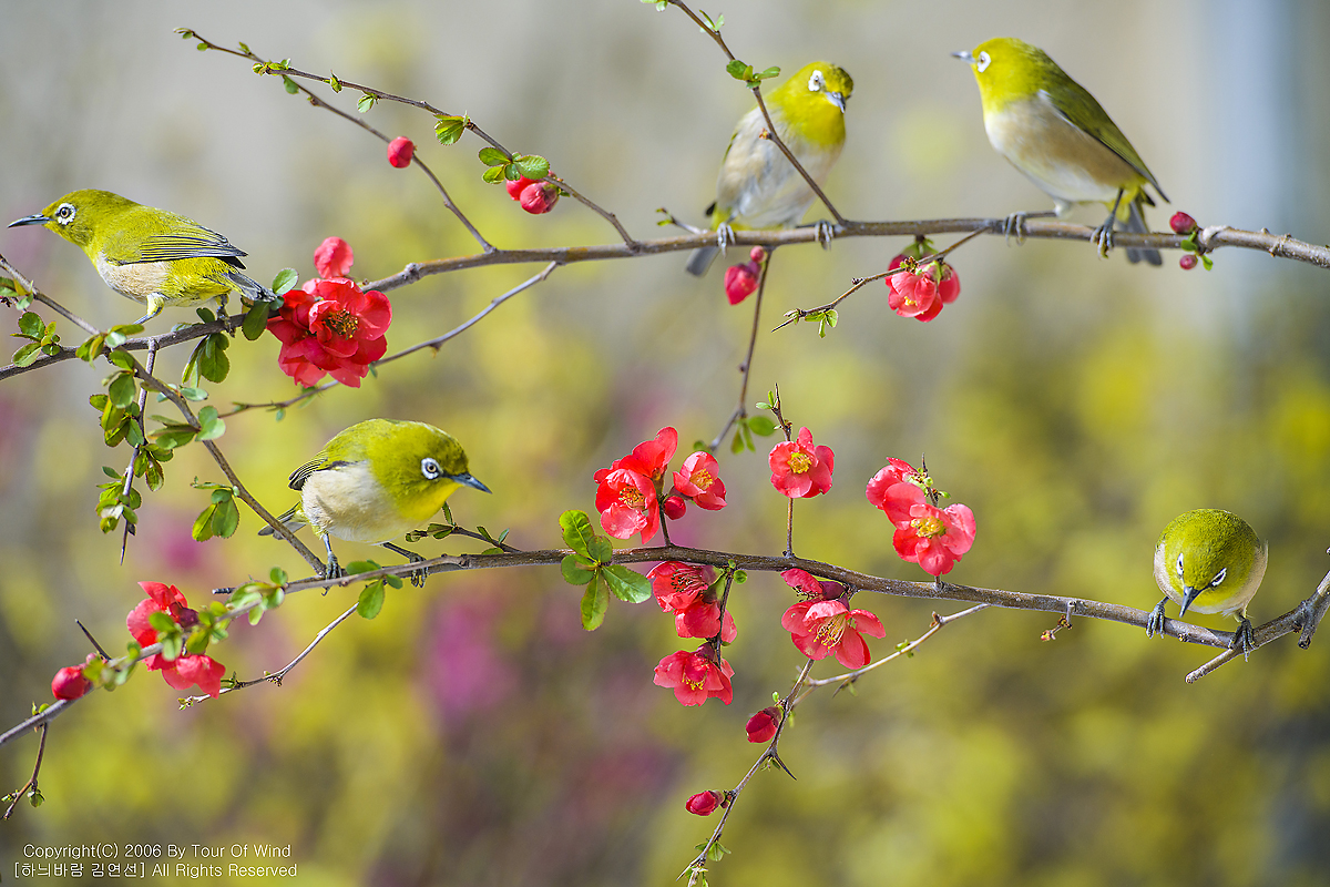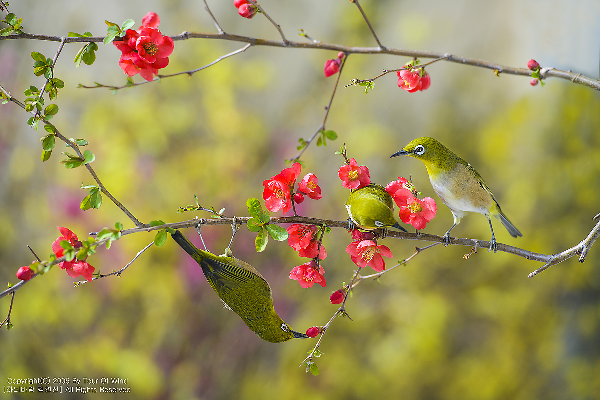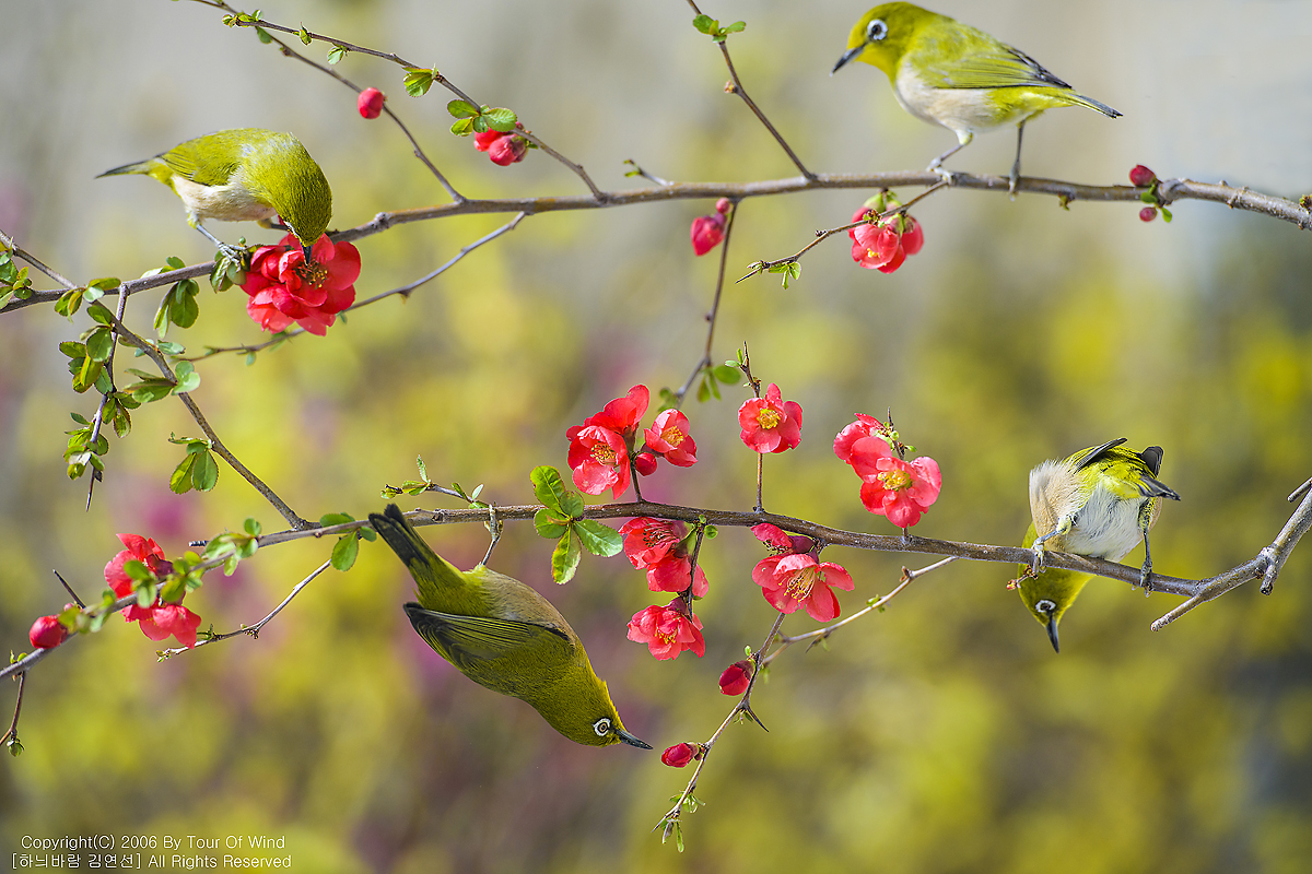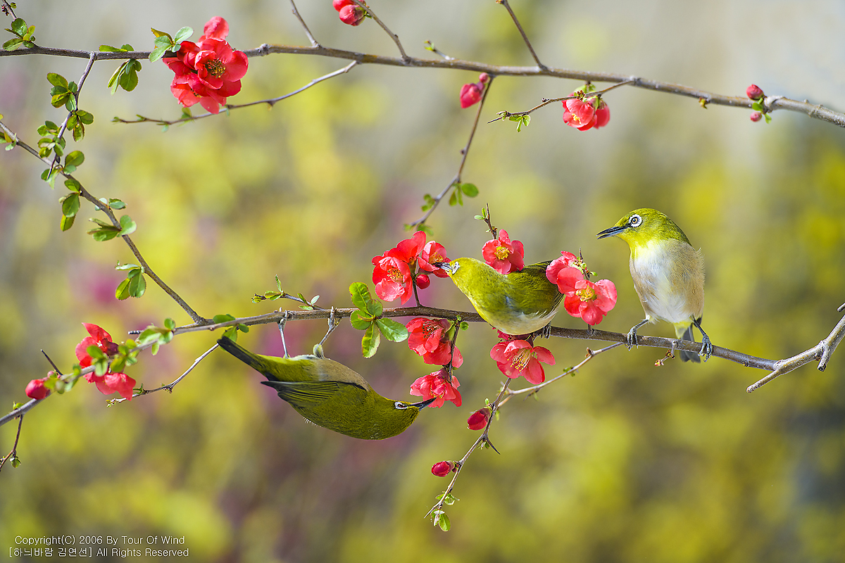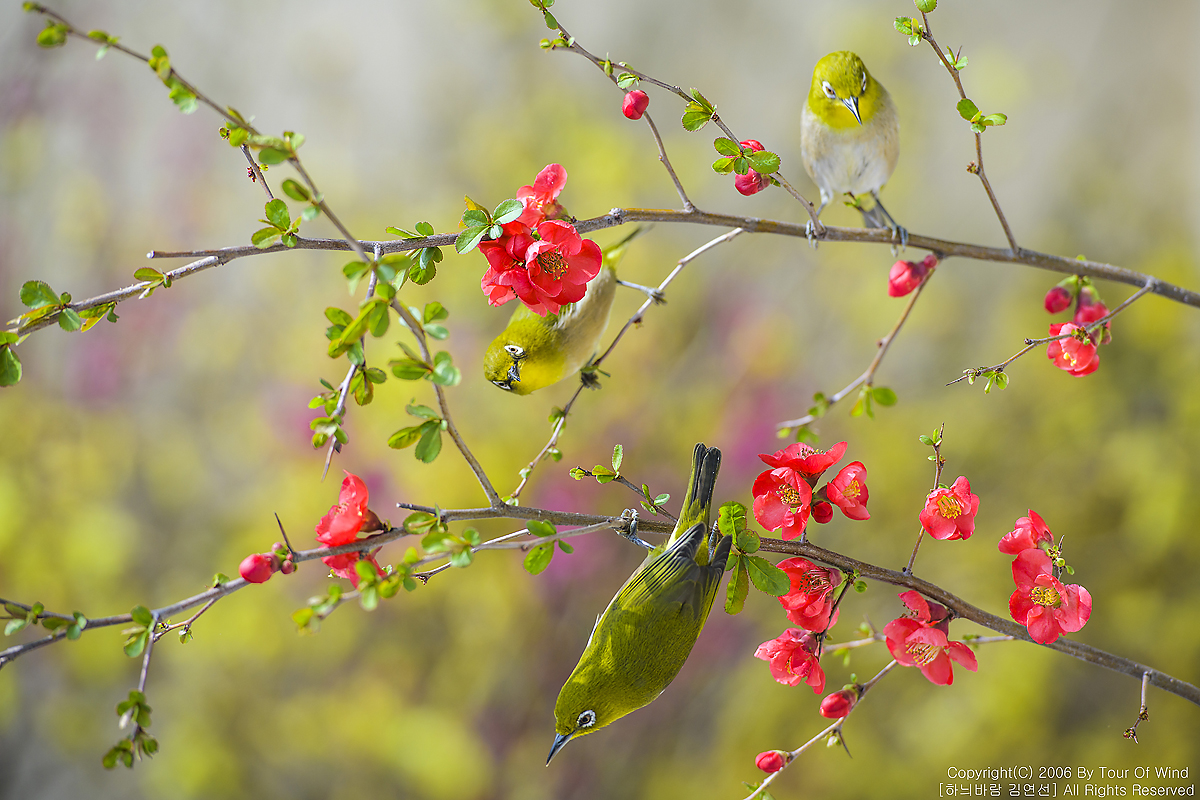 꿀을 찾는 동박새들입니다.