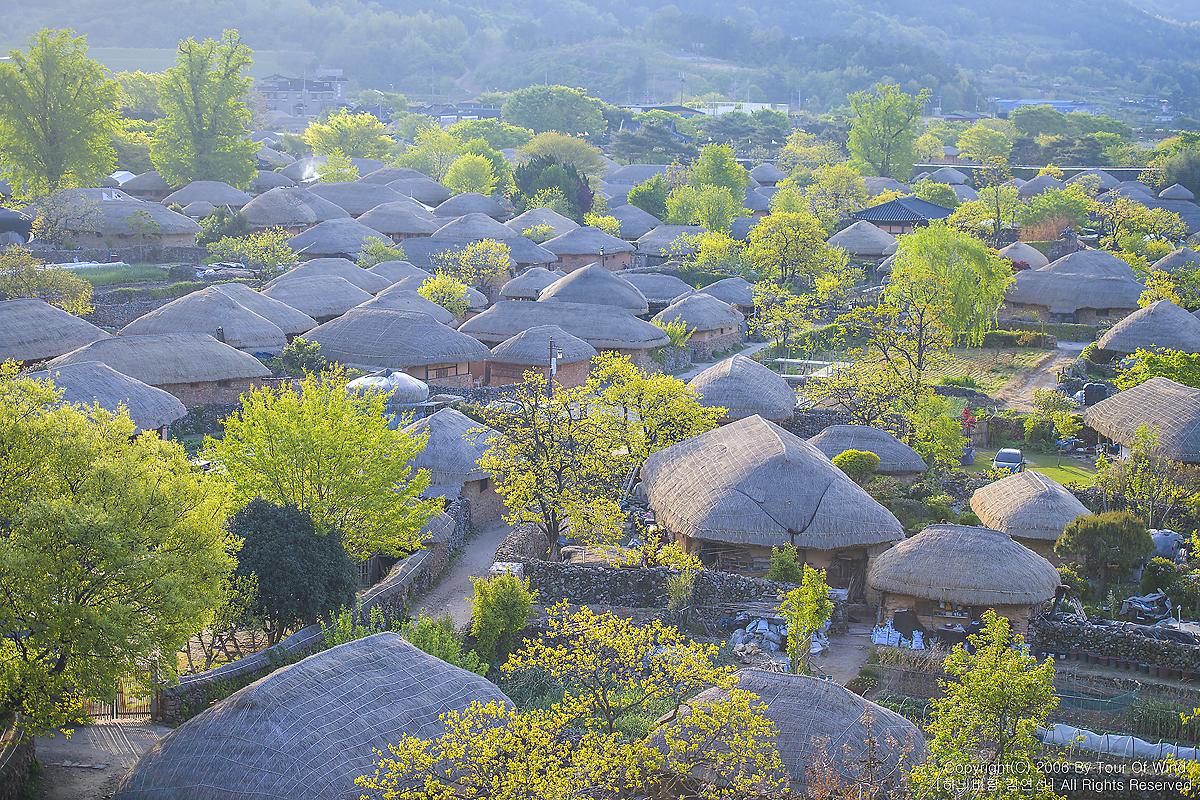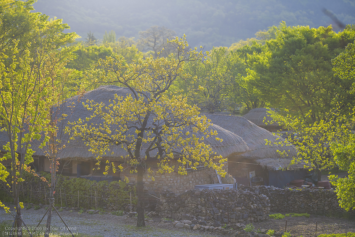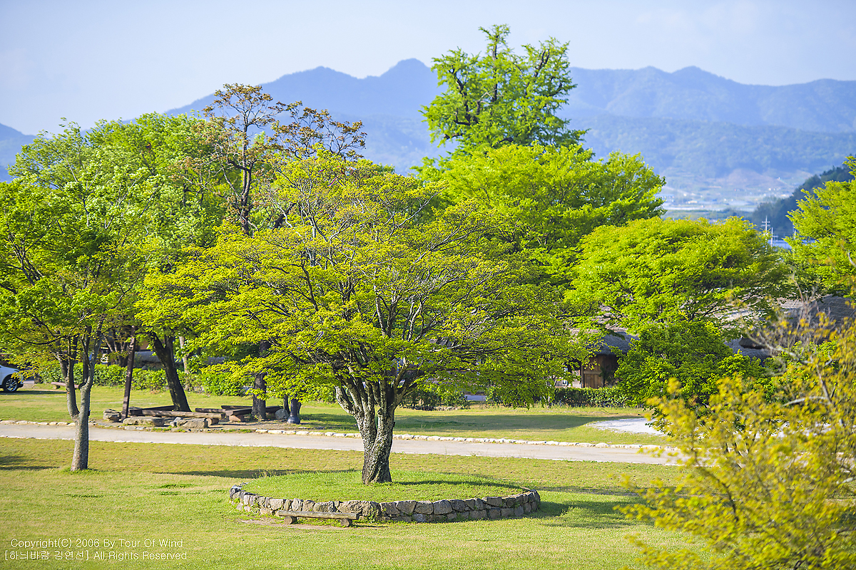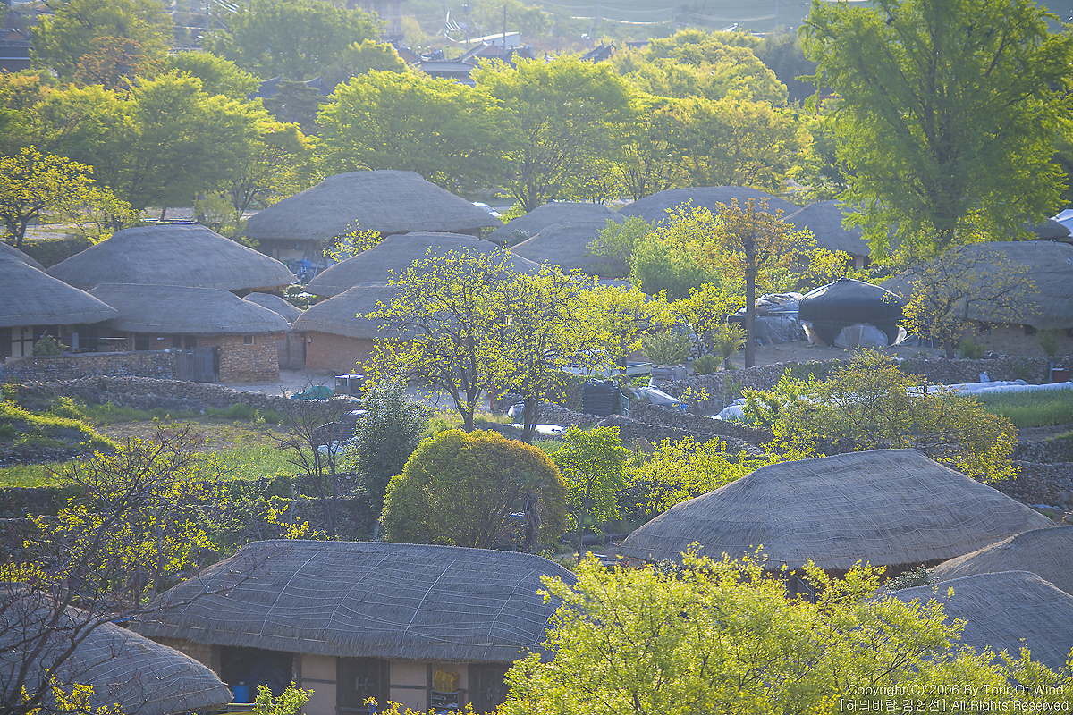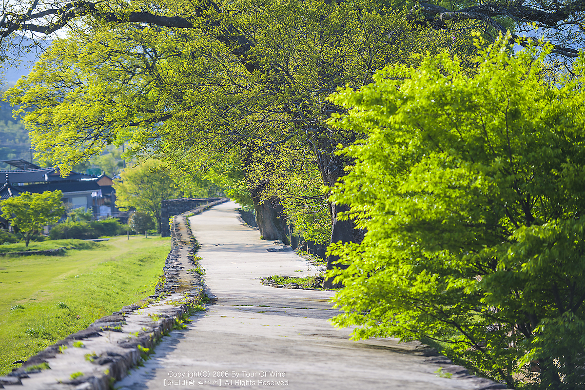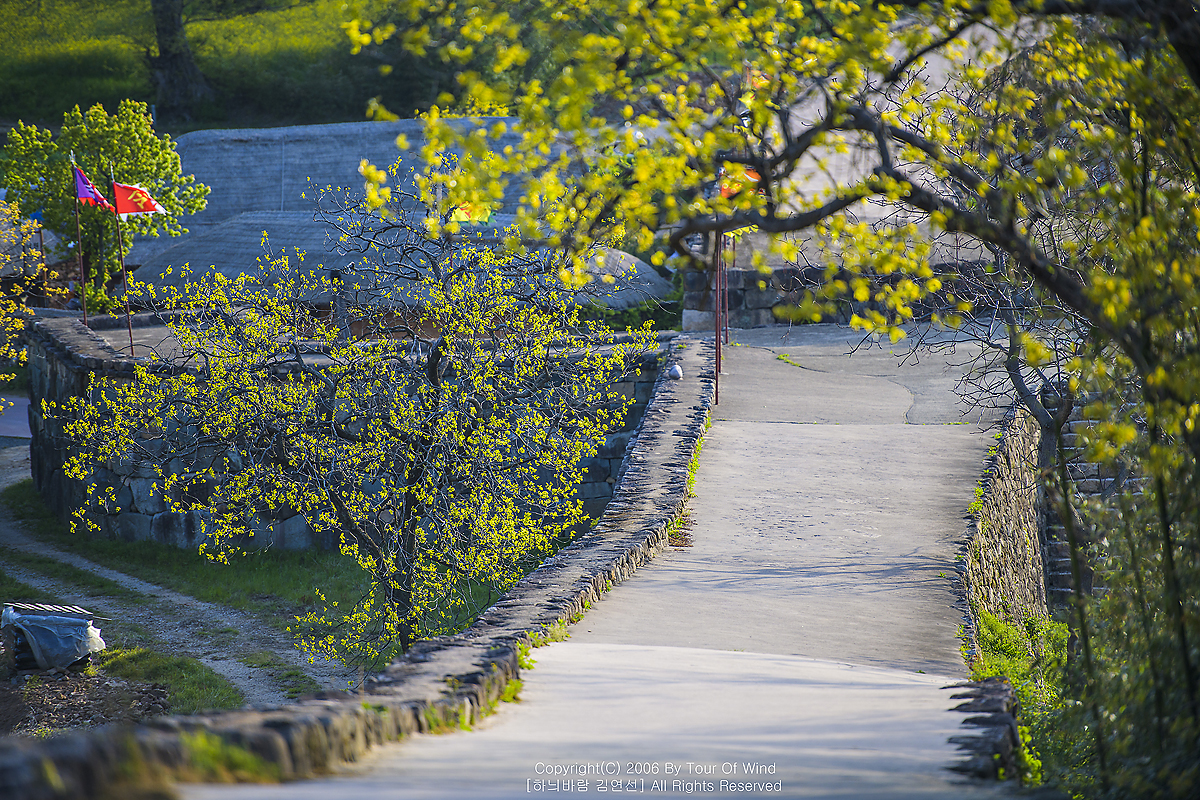 여행자를 배웅해주는 봄날의 낙안읍성입니다.