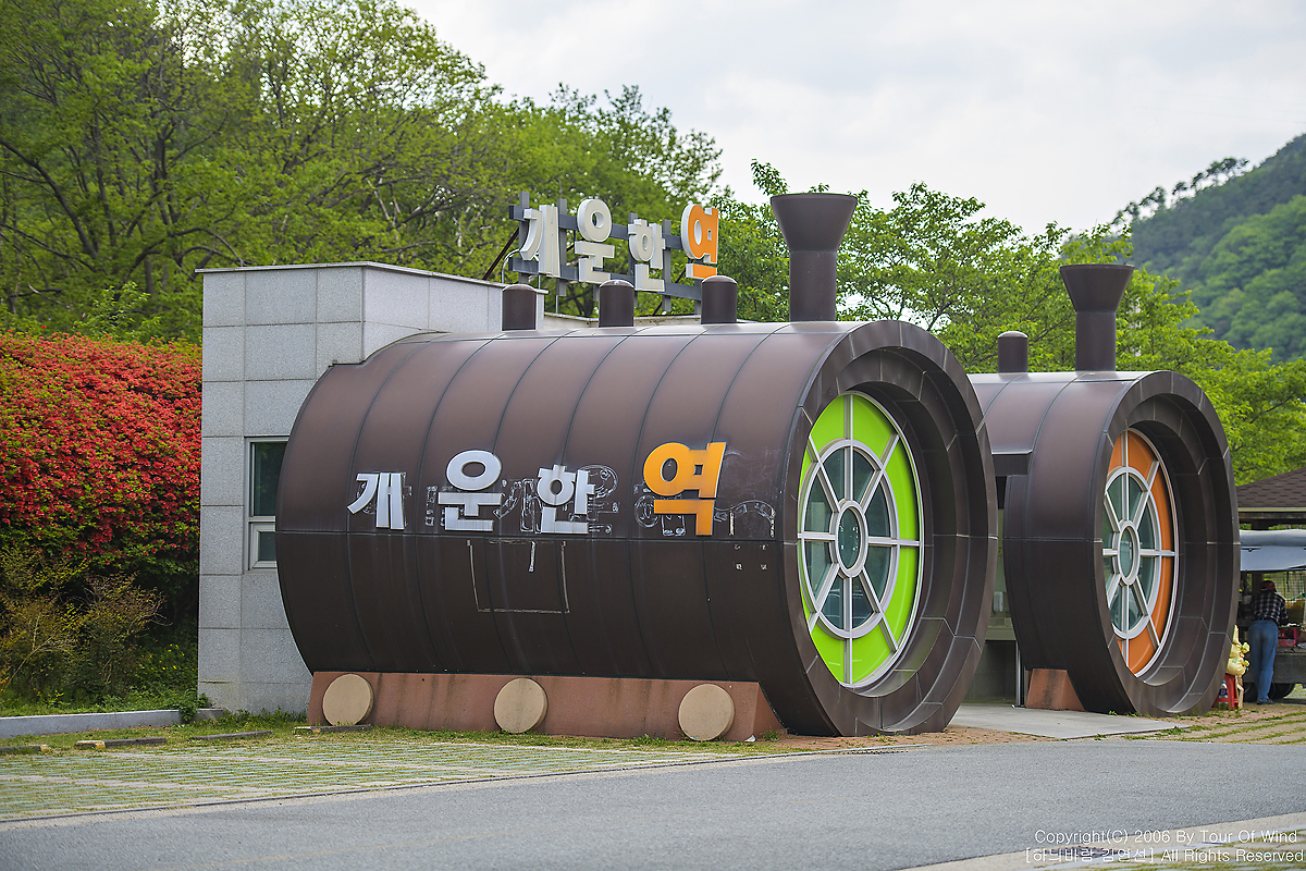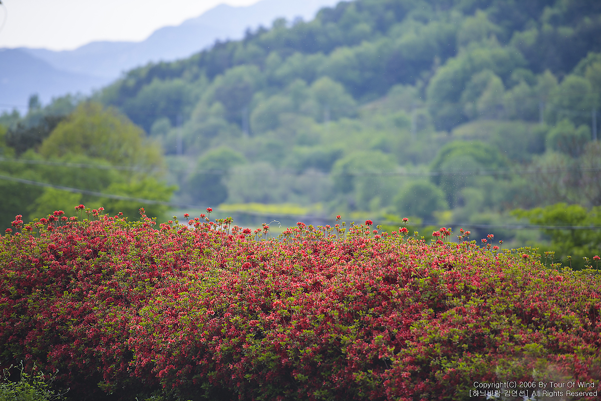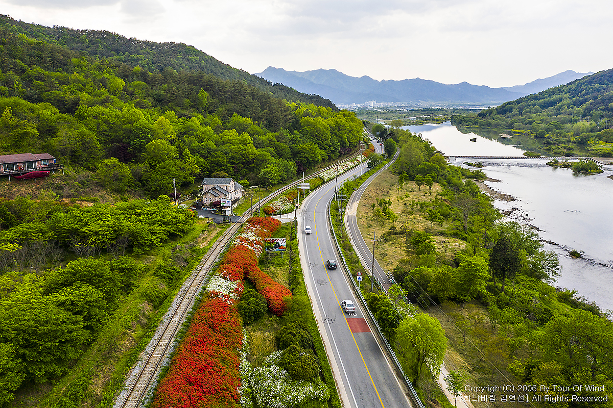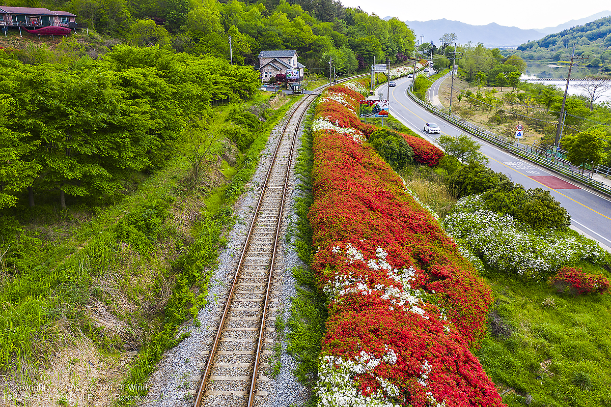 기차길을 따라 철쭉꽃들이 만개하였습니다