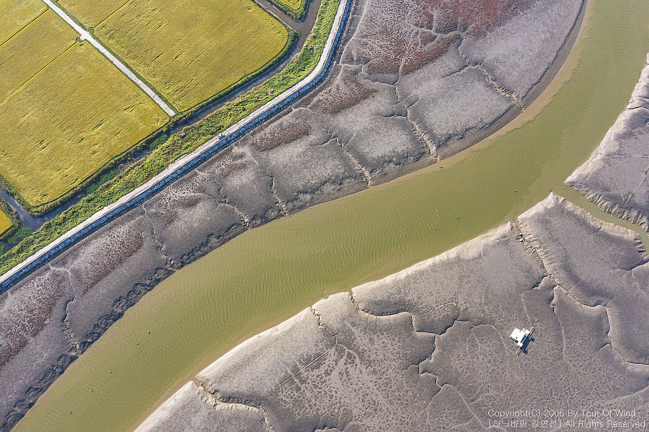 갯펄은 물길을 따라 아름다운 그림을 그리고 있습니다