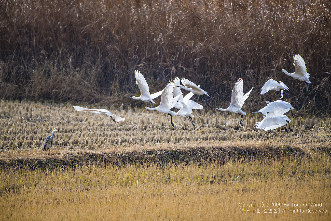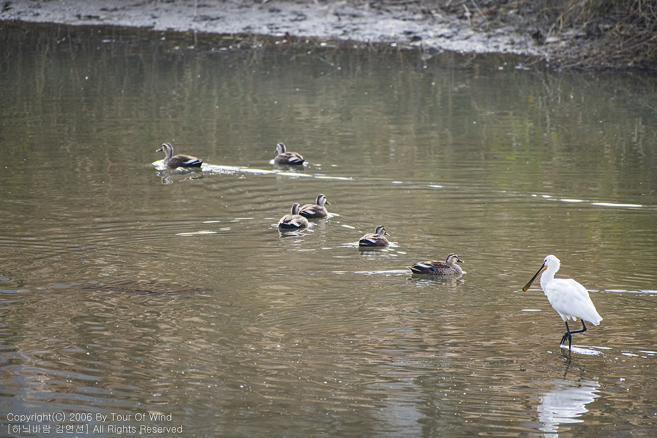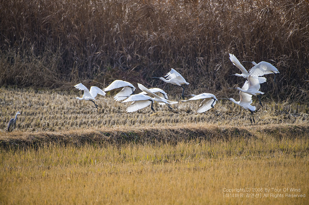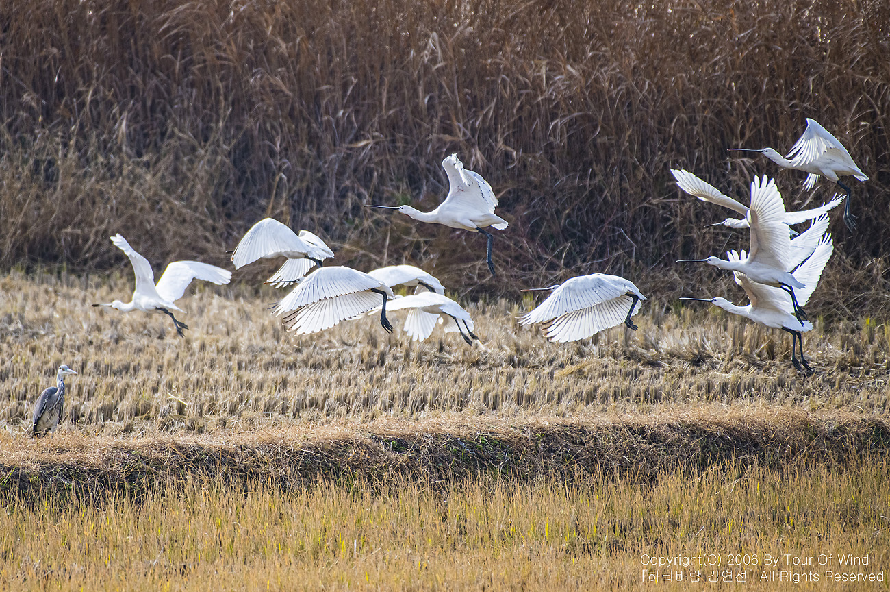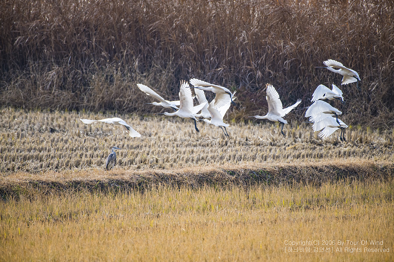 노랑부리 저어새가 날아 오르든 말든 신경도 쓰지 않네요^^