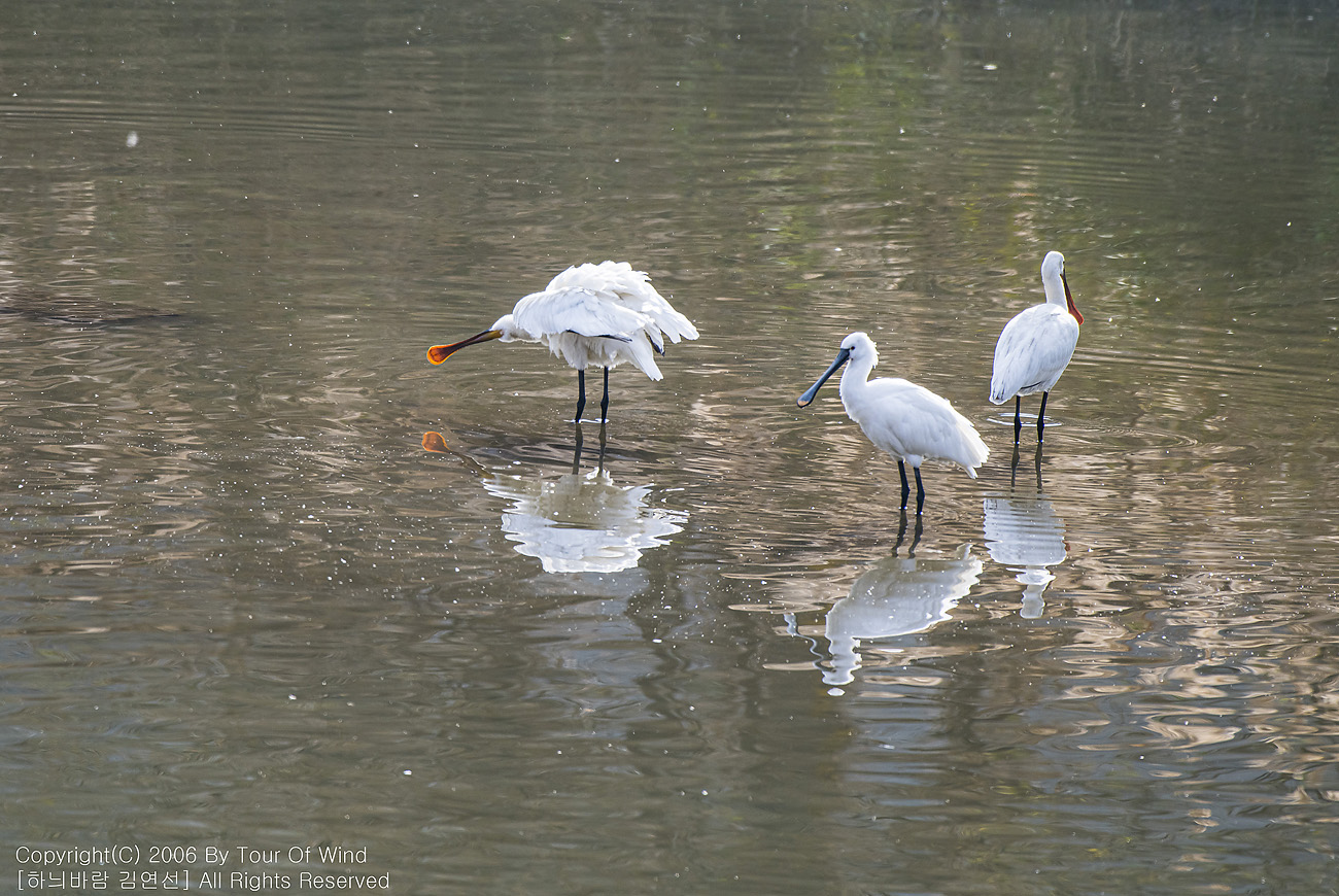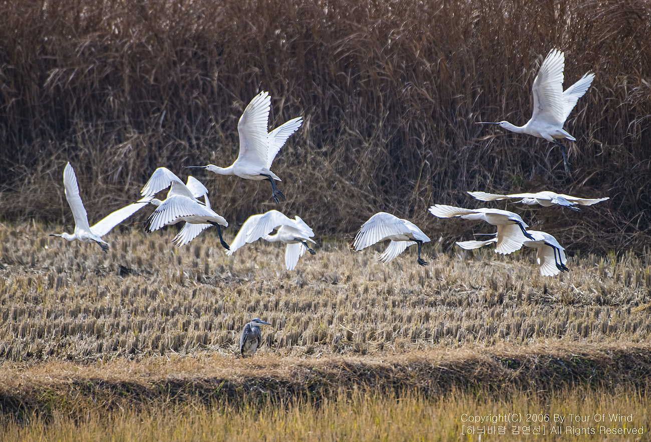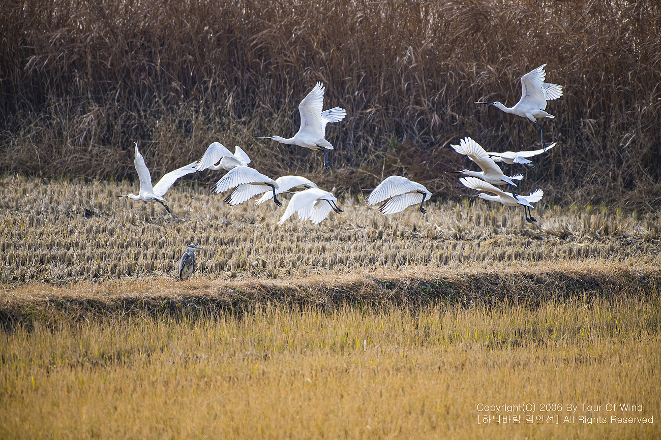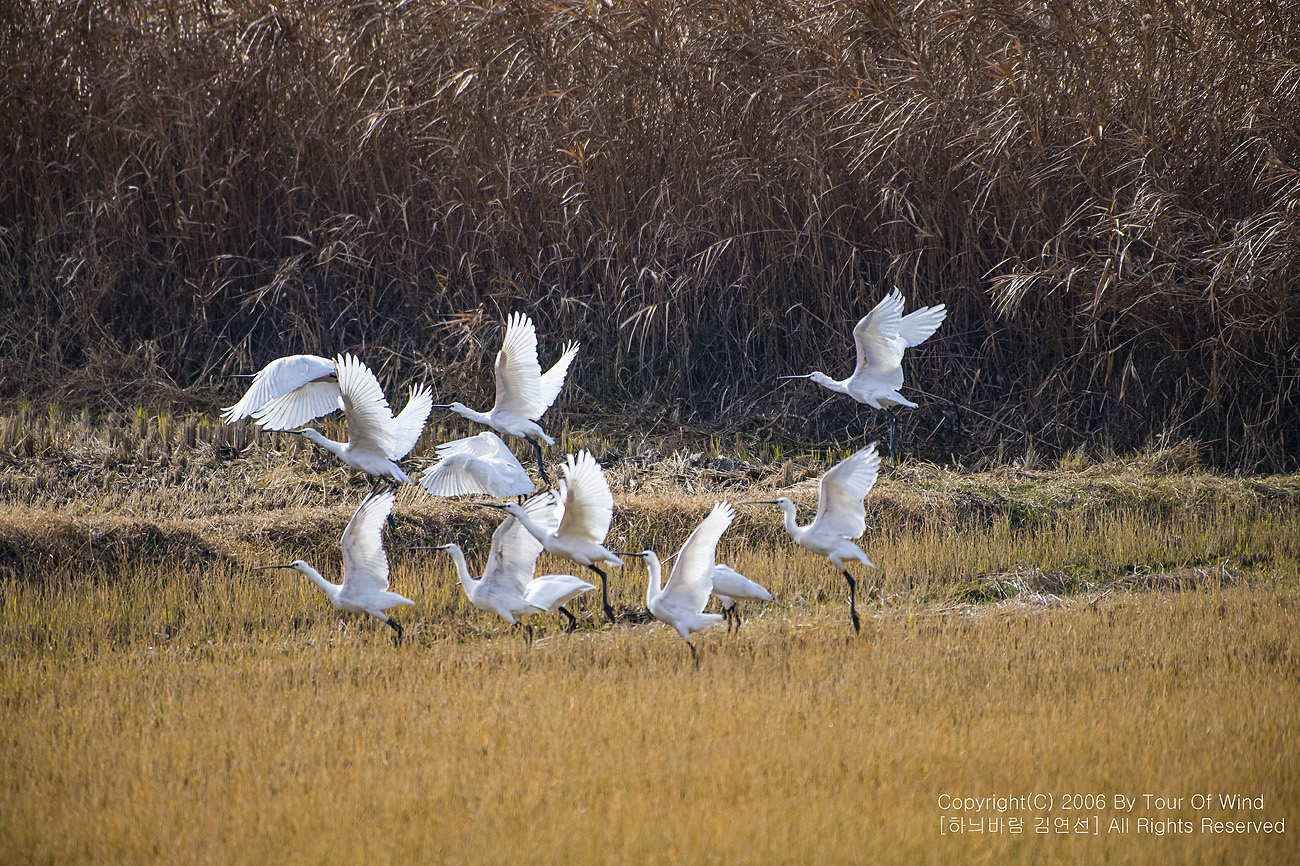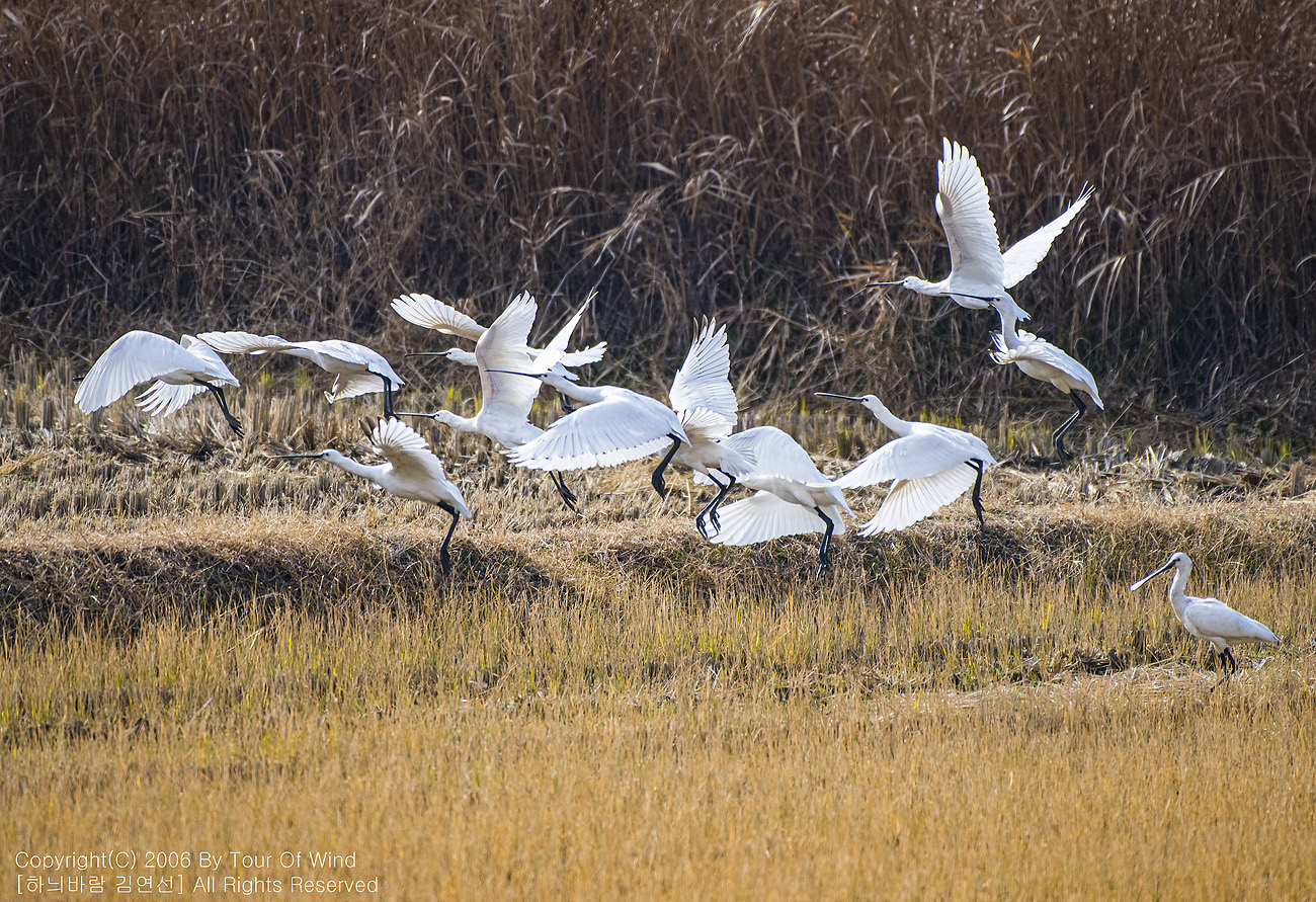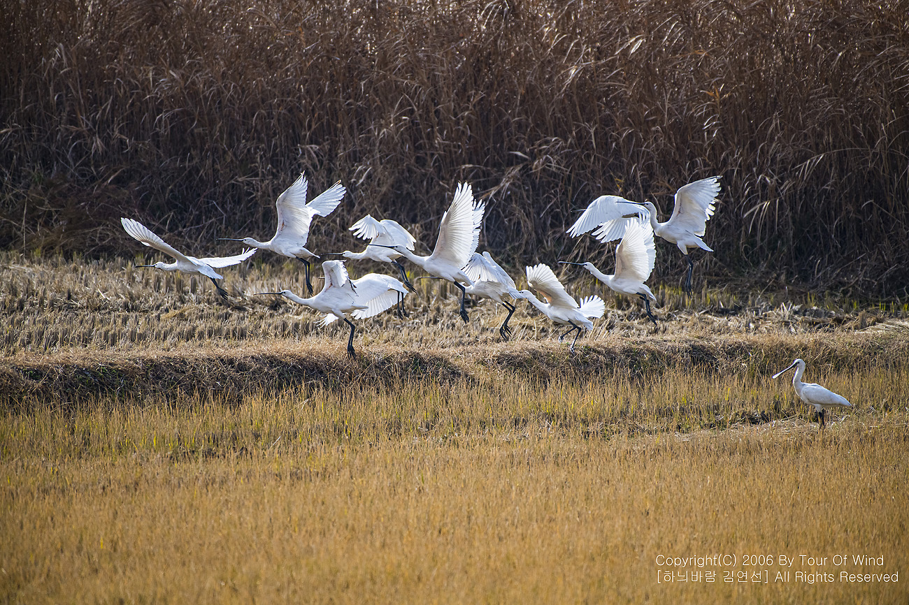노랑부리 저어새가 날아 오르든 말든 신경도 쓰지 않네요^^