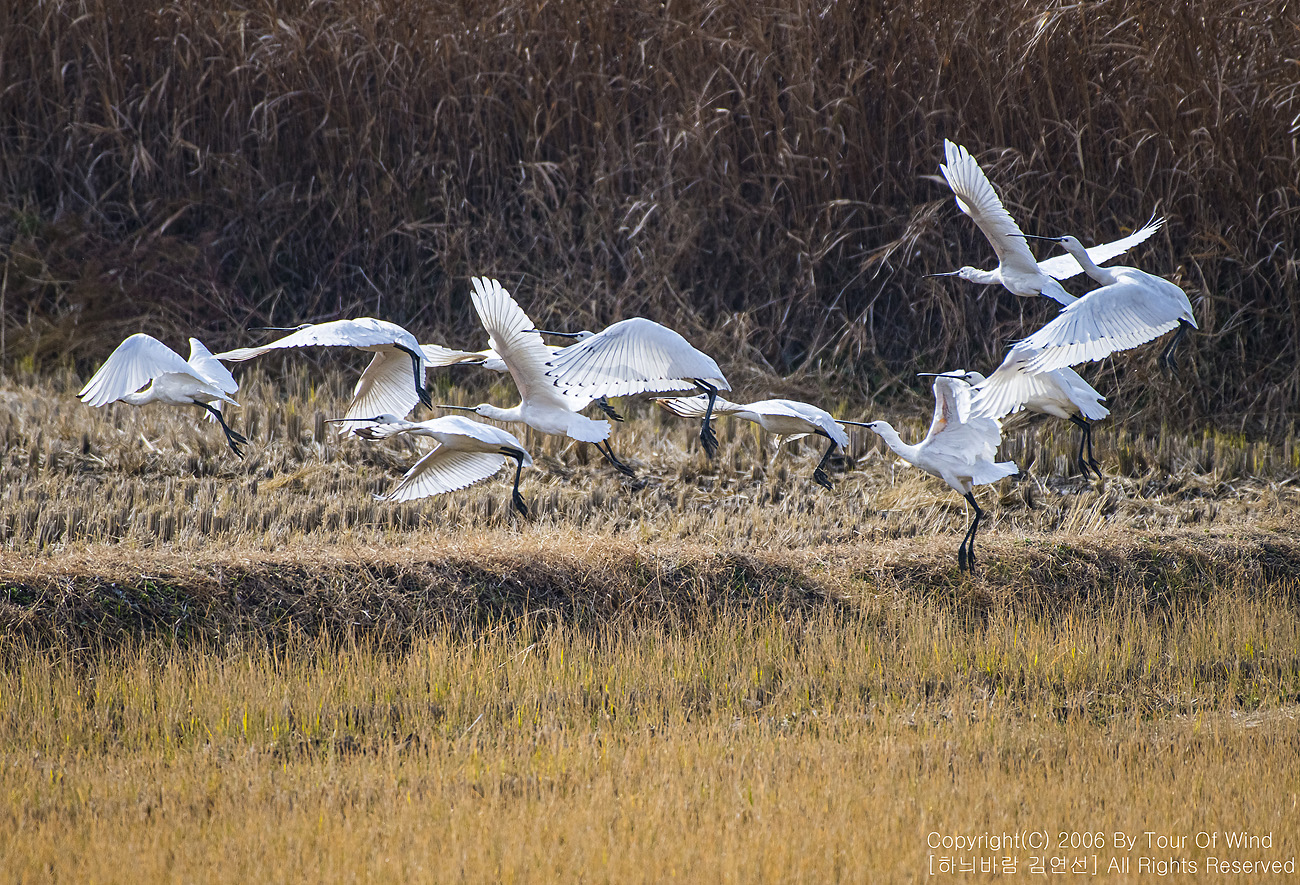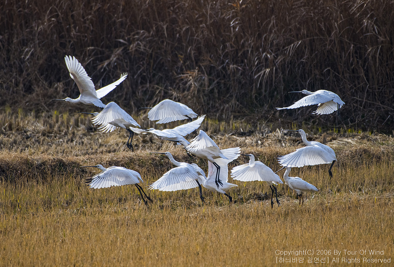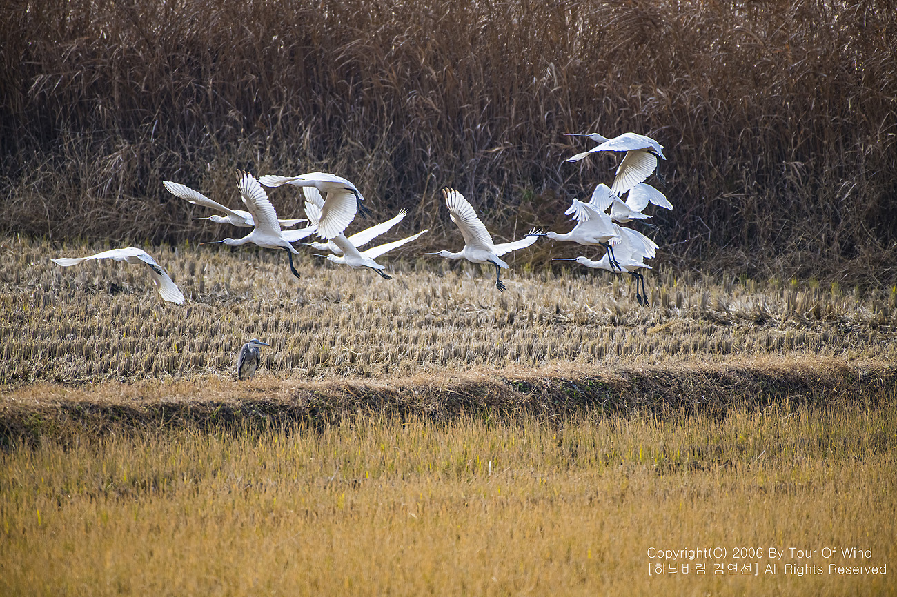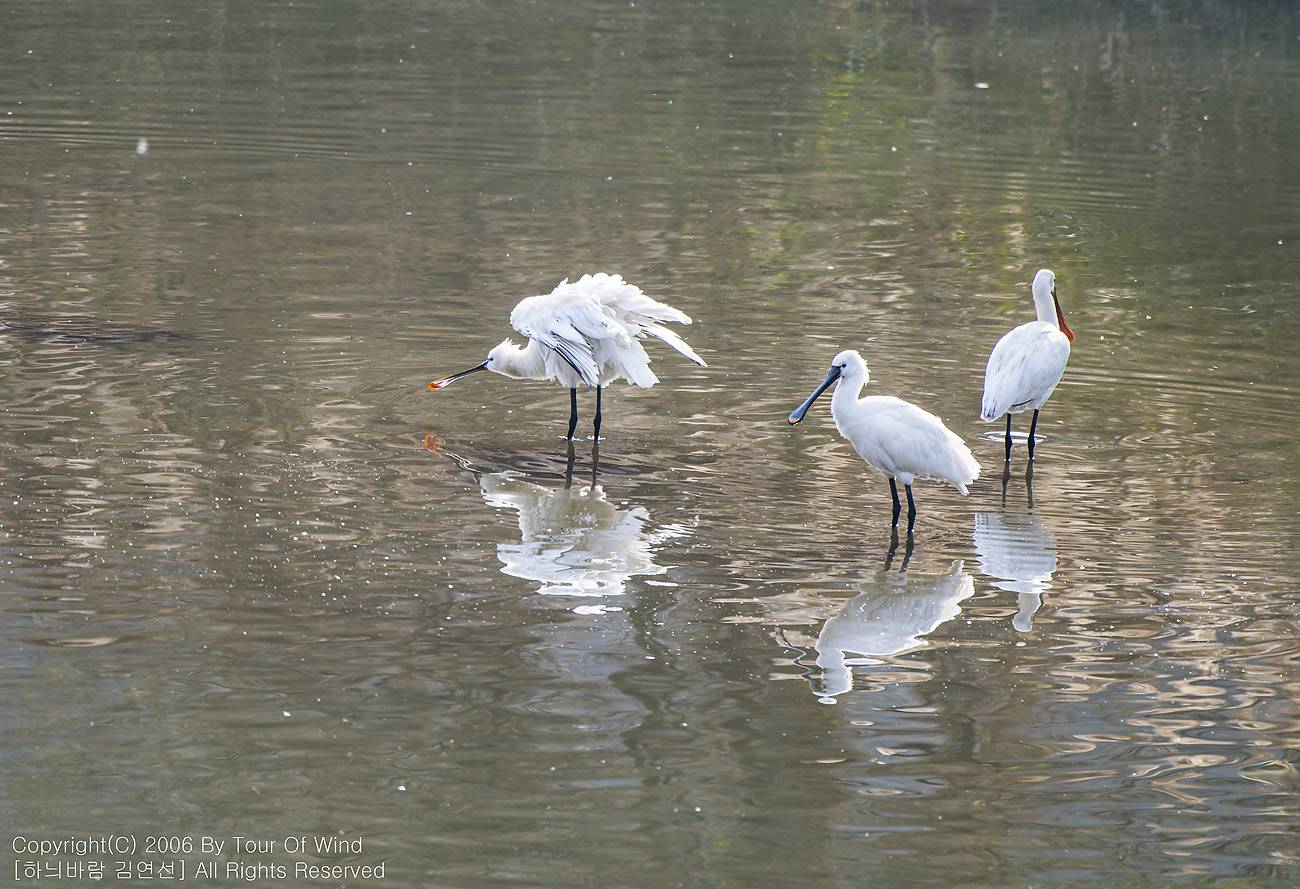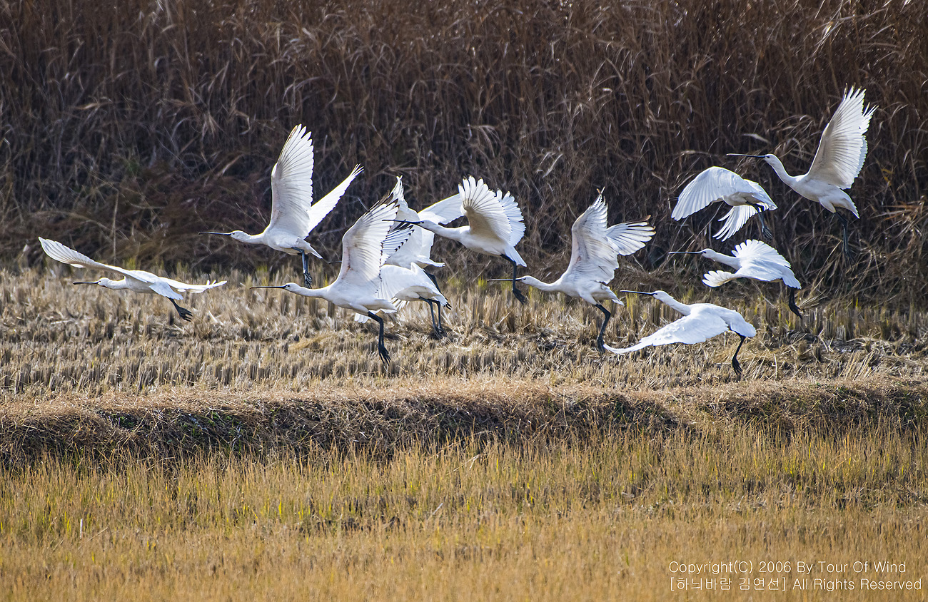 노랑부리 저어새가 날아 오르든 말든 신경도 쓰지 않네요^^