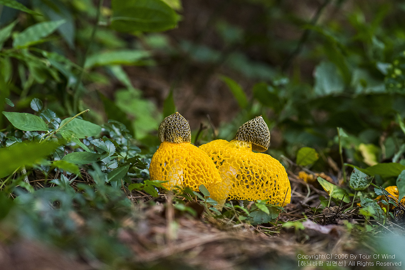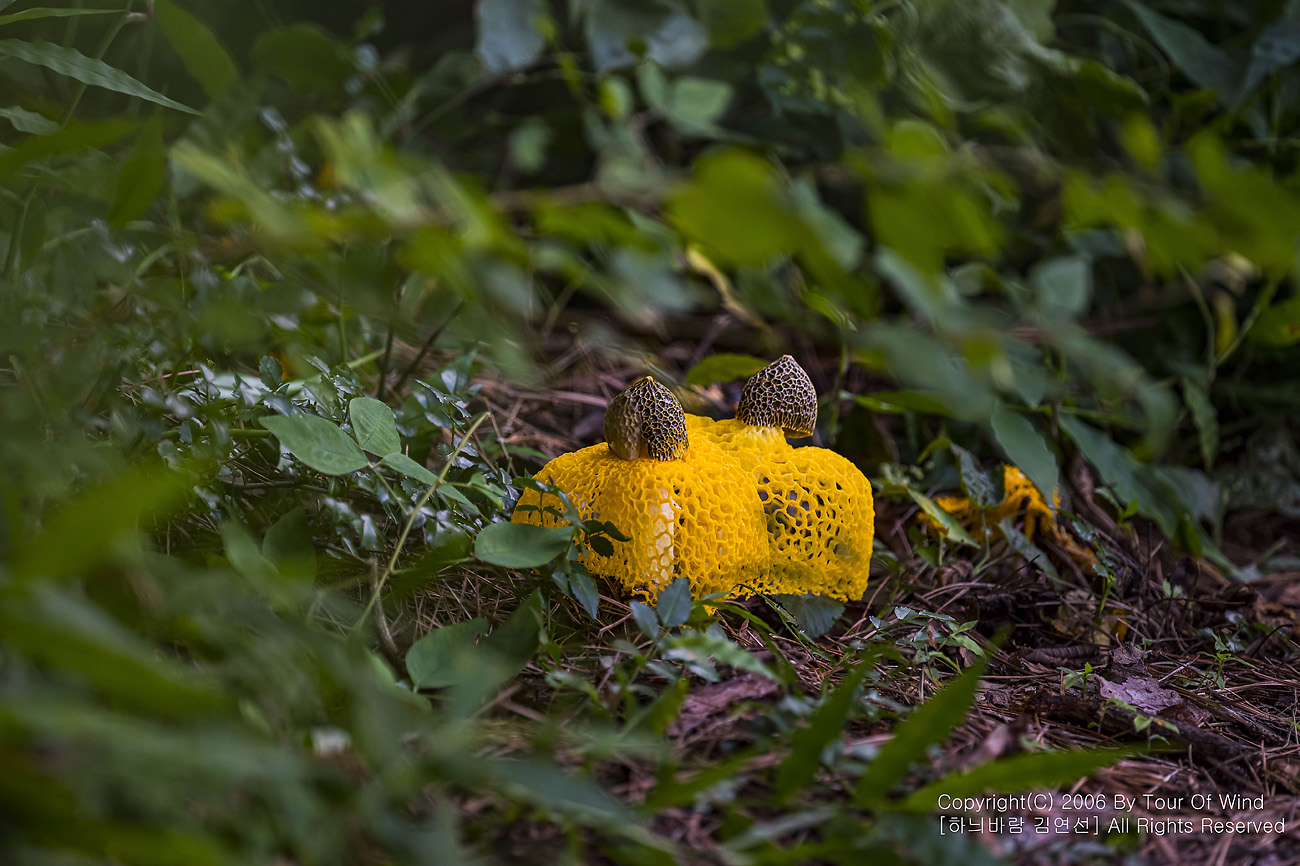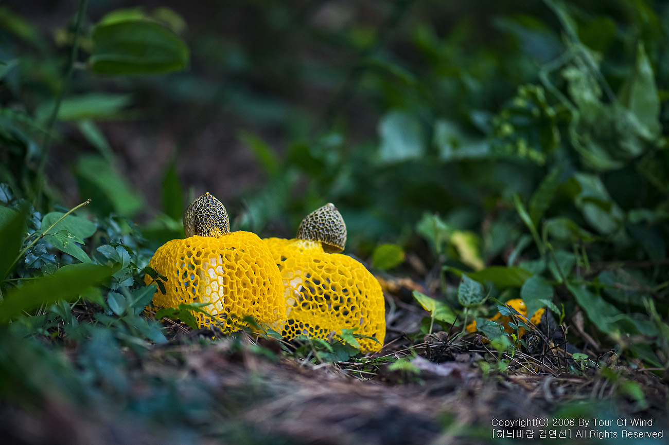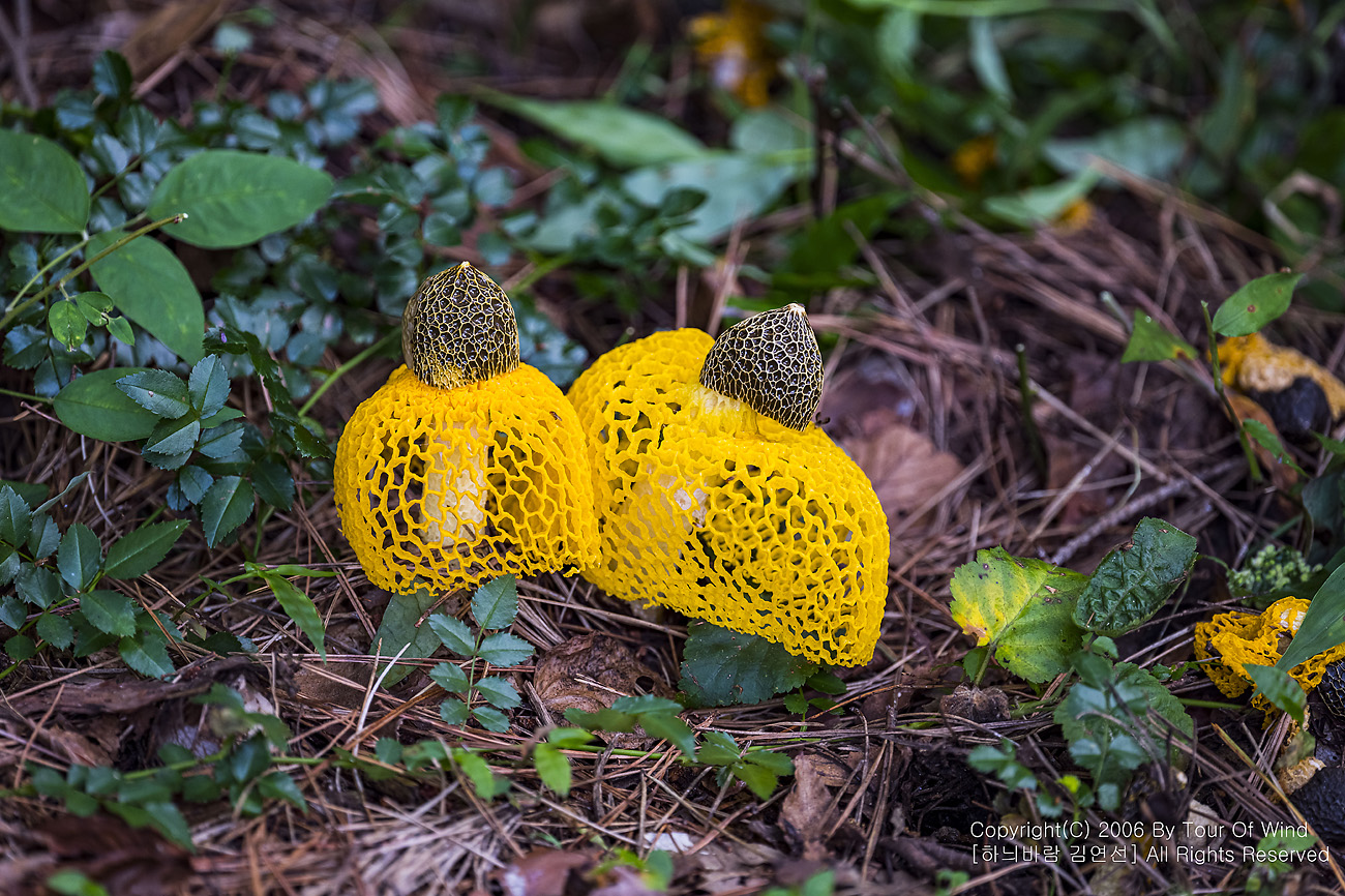 때론 둘이 같이 곱게 핀 노랑망태버섯....