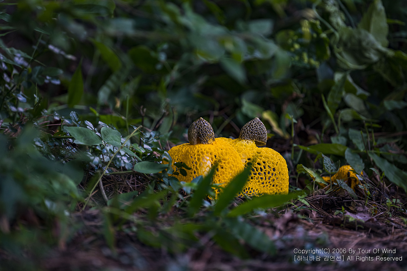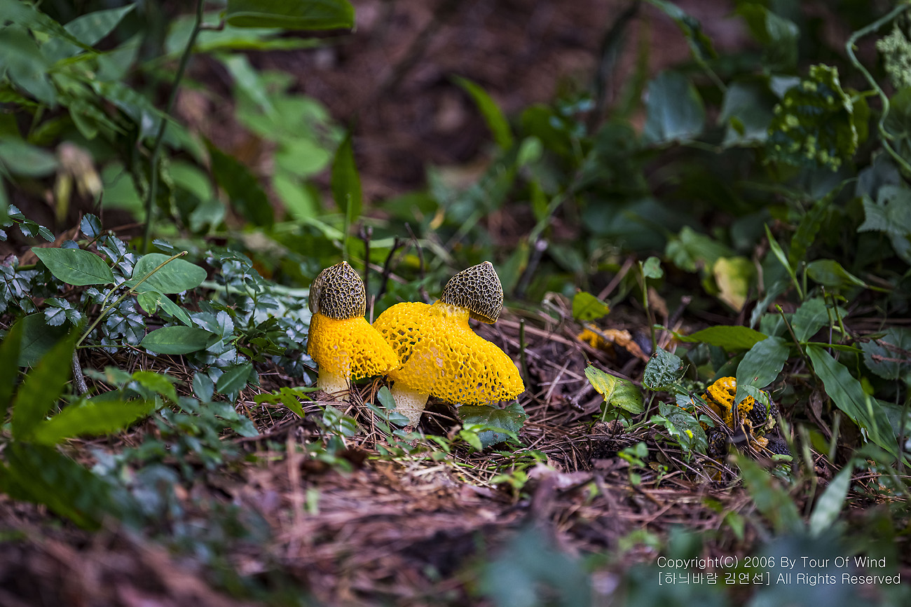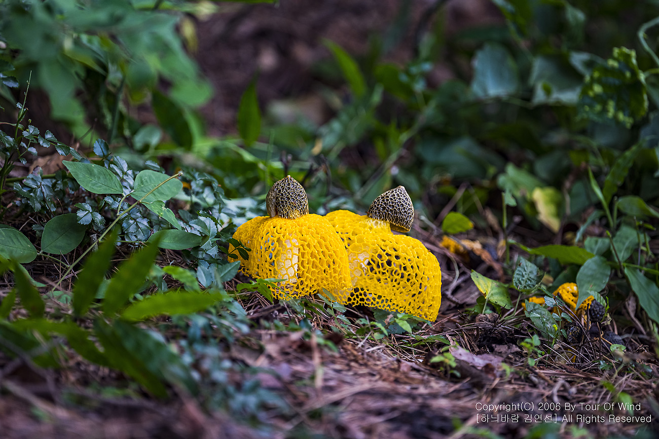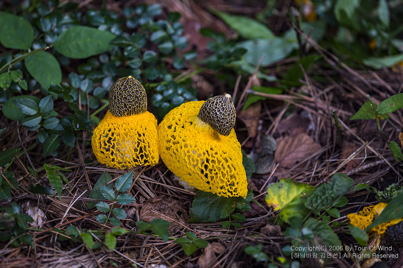 때론 둘이 같이 곱게 핀 노랑망태버섯....