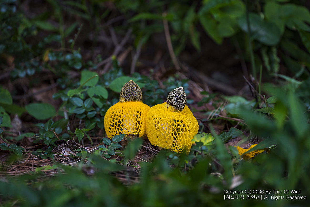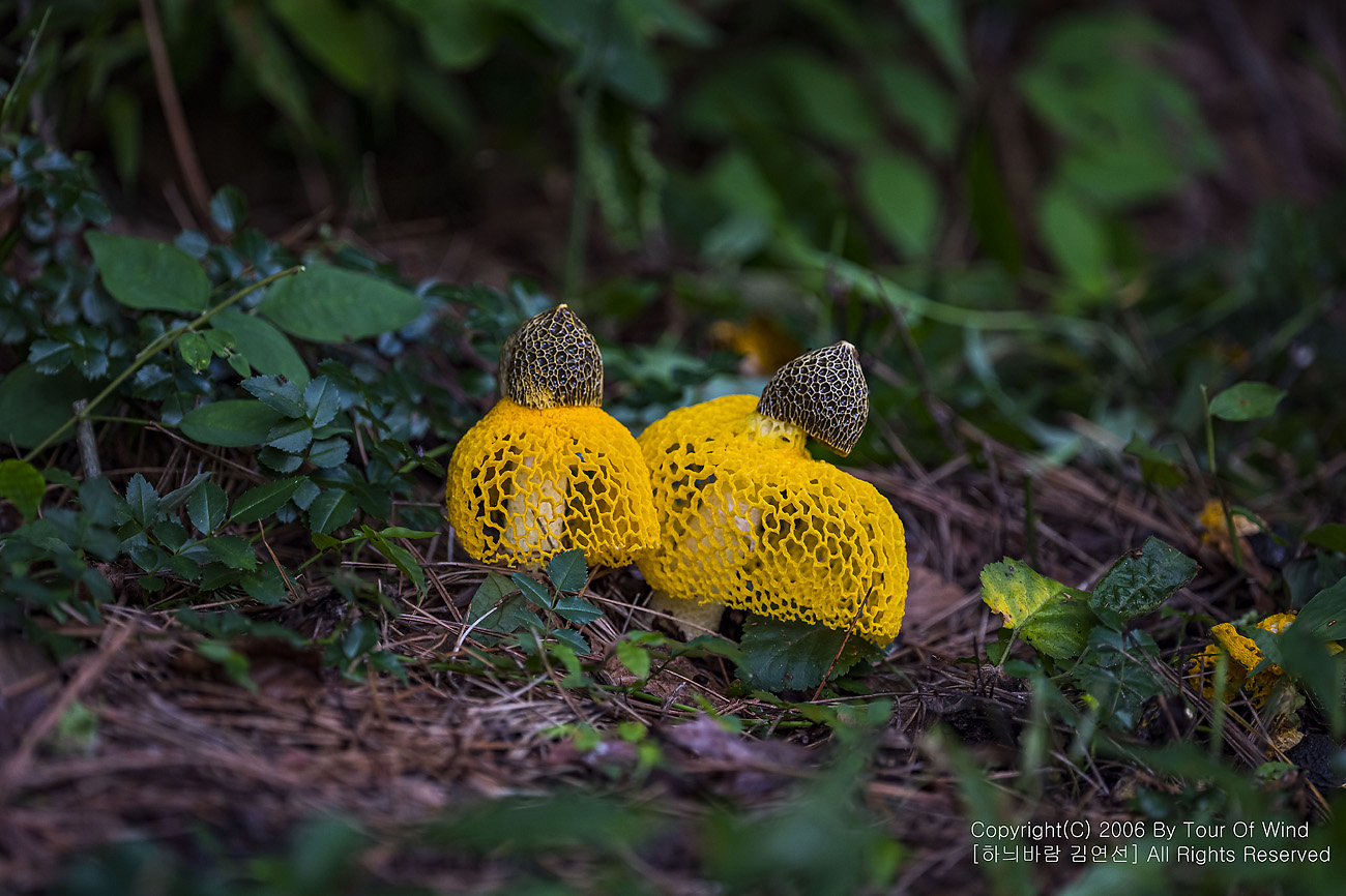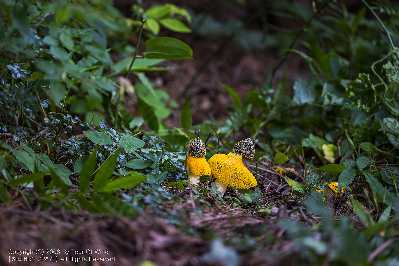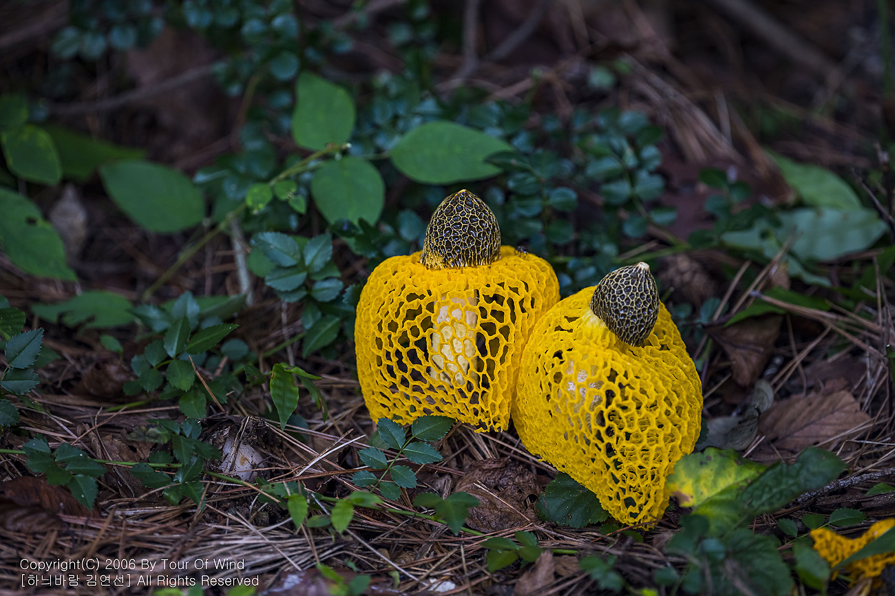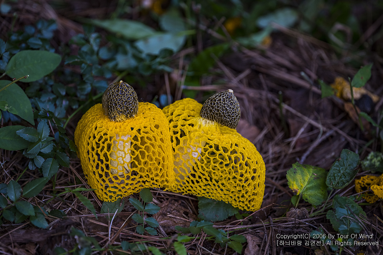 때론 둘이 같이 곱게 핀 노랑망태버섯....