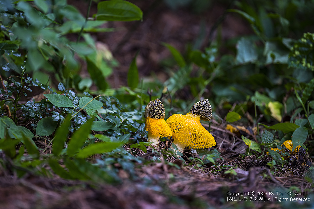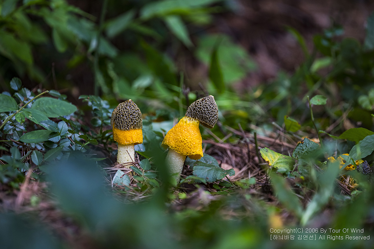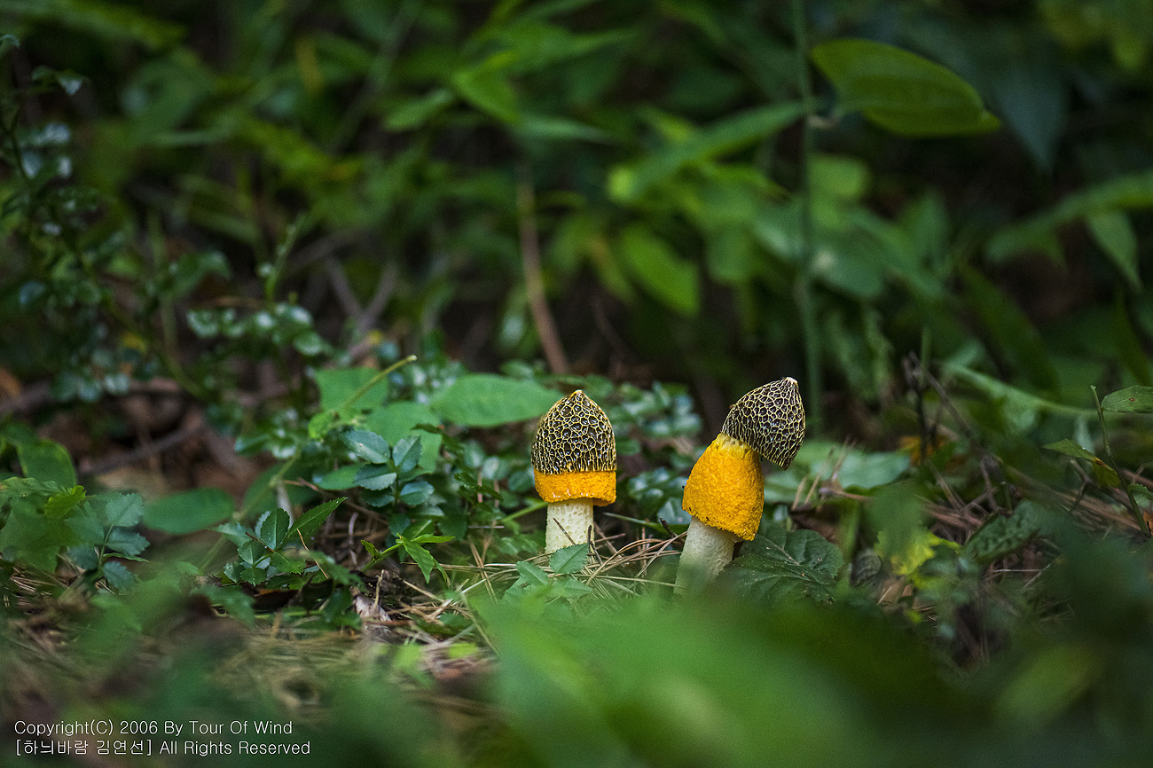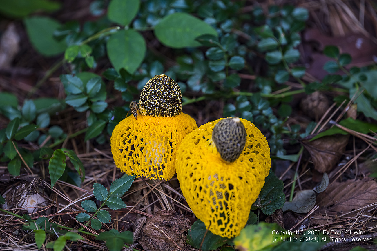 때론 둘이 같이 곱게 핀 노랑망태버섯....