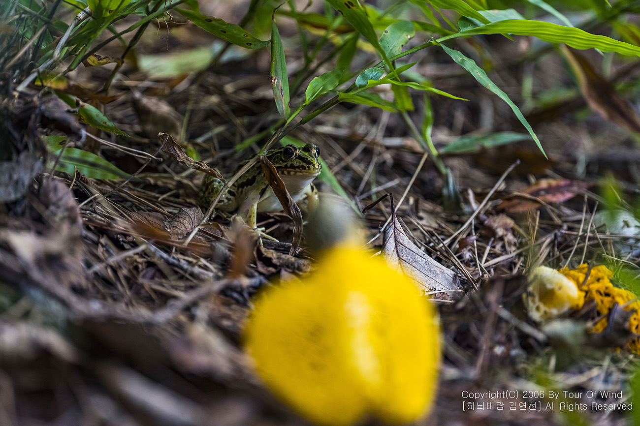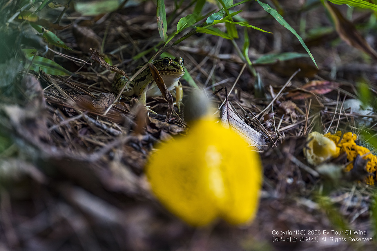 버섯 근처에 개구리도 찾아 옵니다