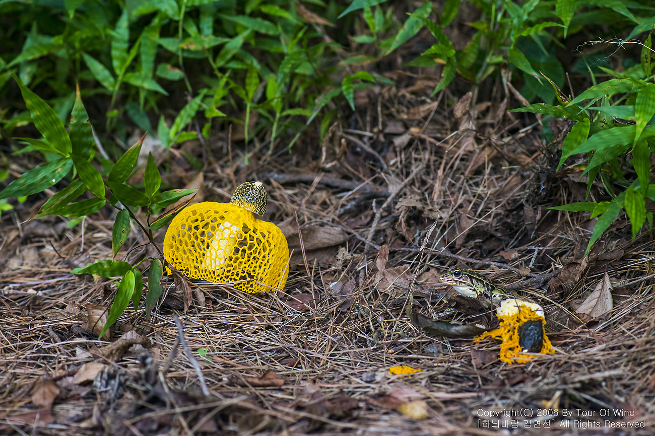 개구리와 노랑망태버섯