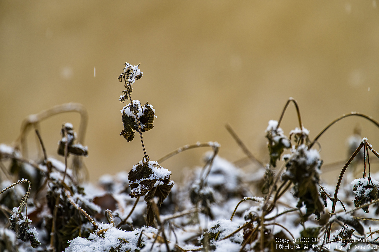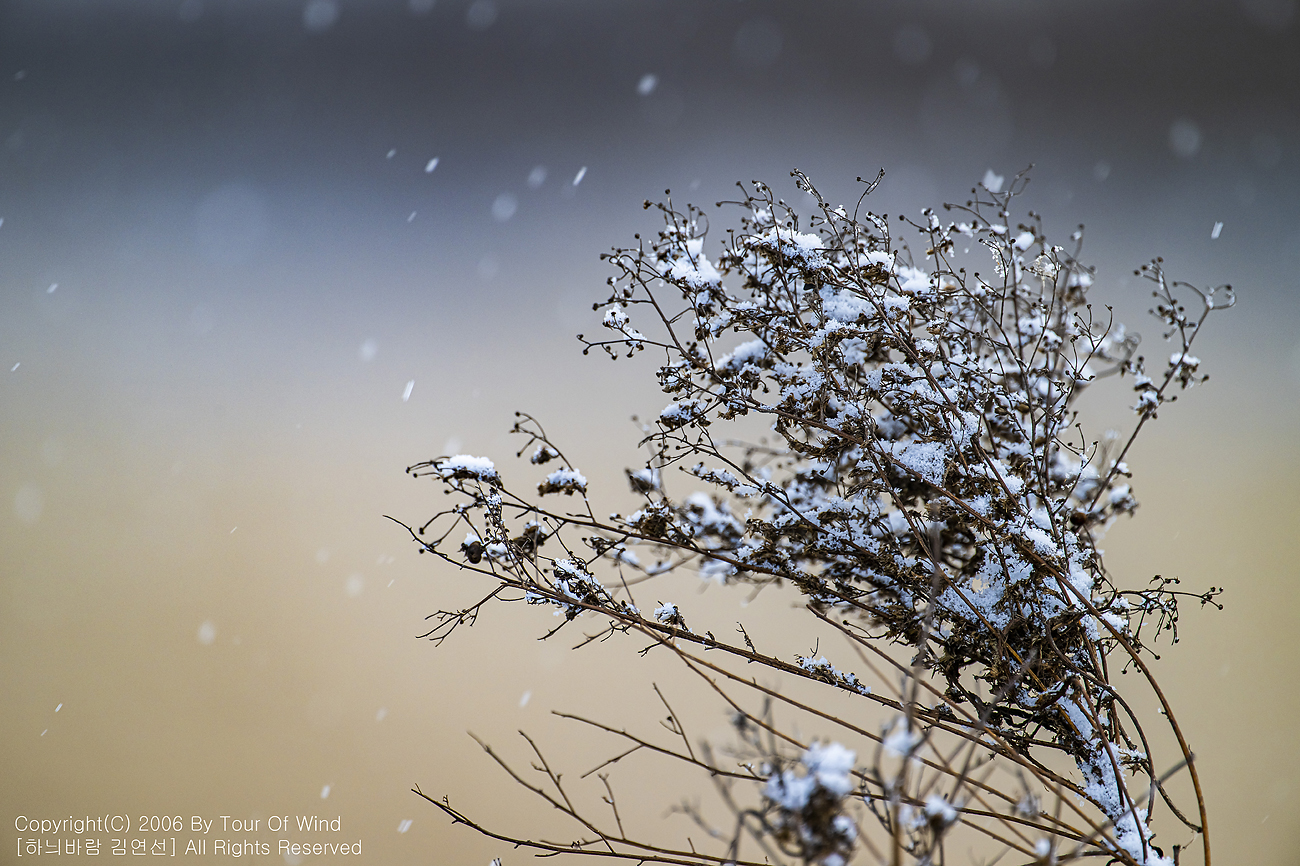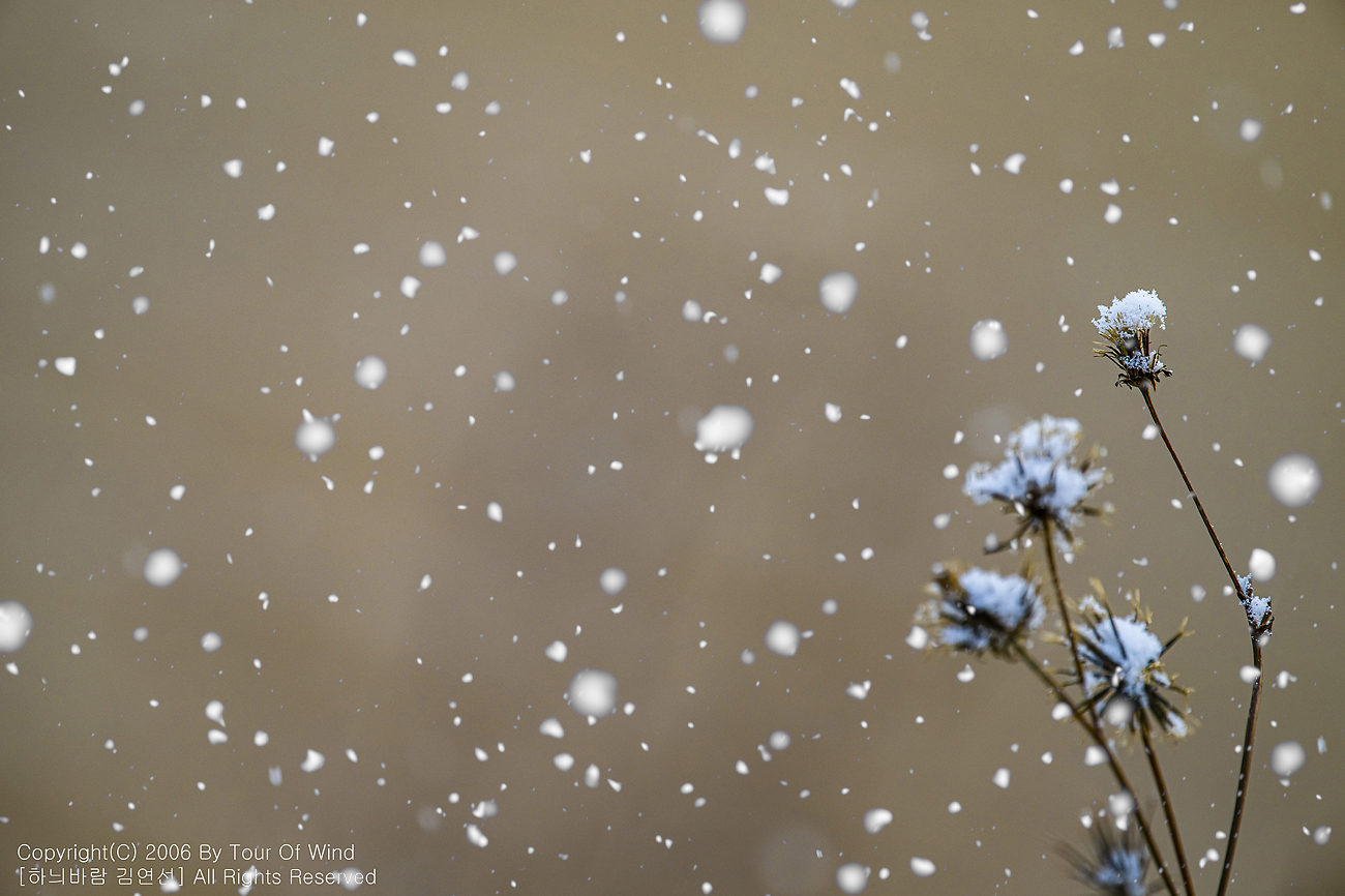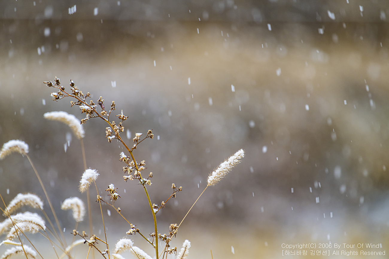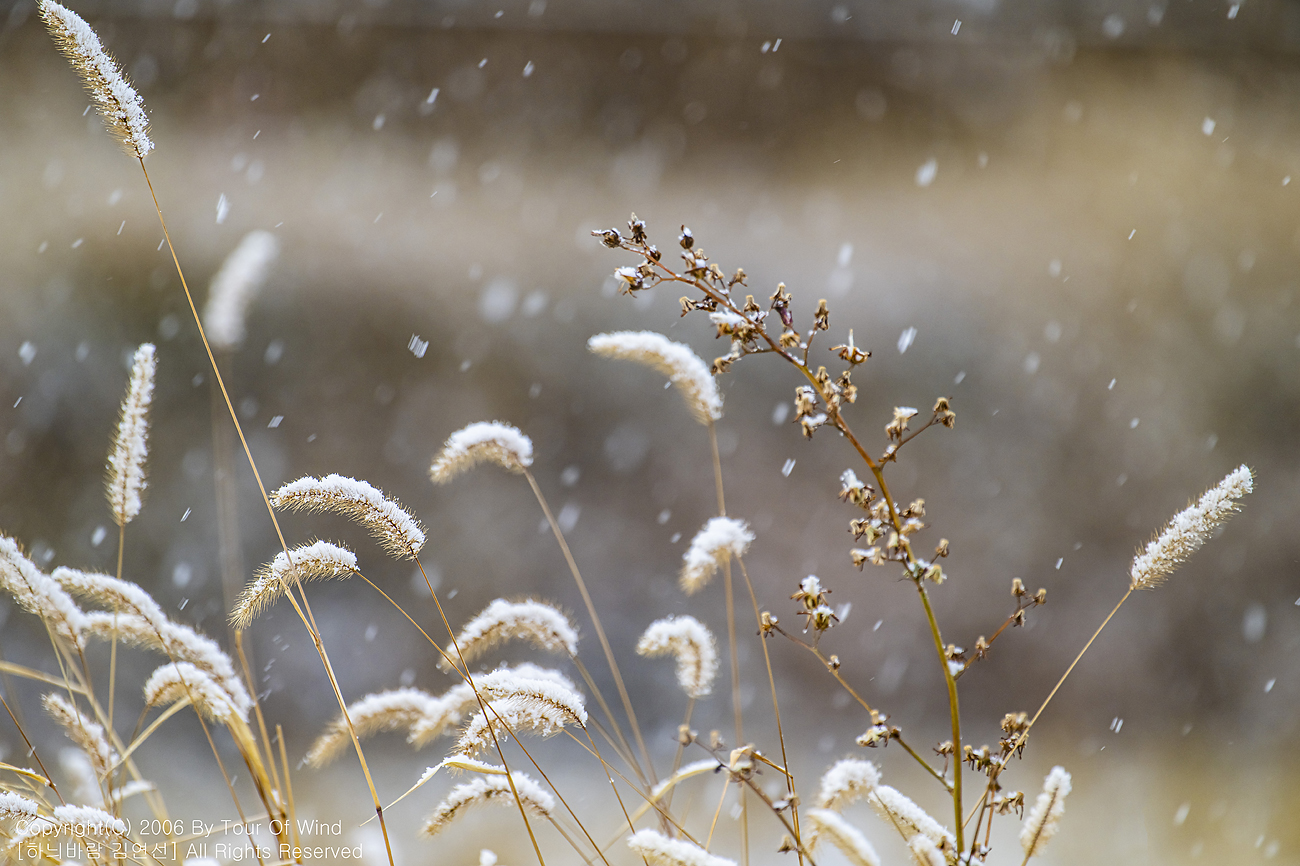작은 풀 끝에 눈이 내려와 쌓이고,