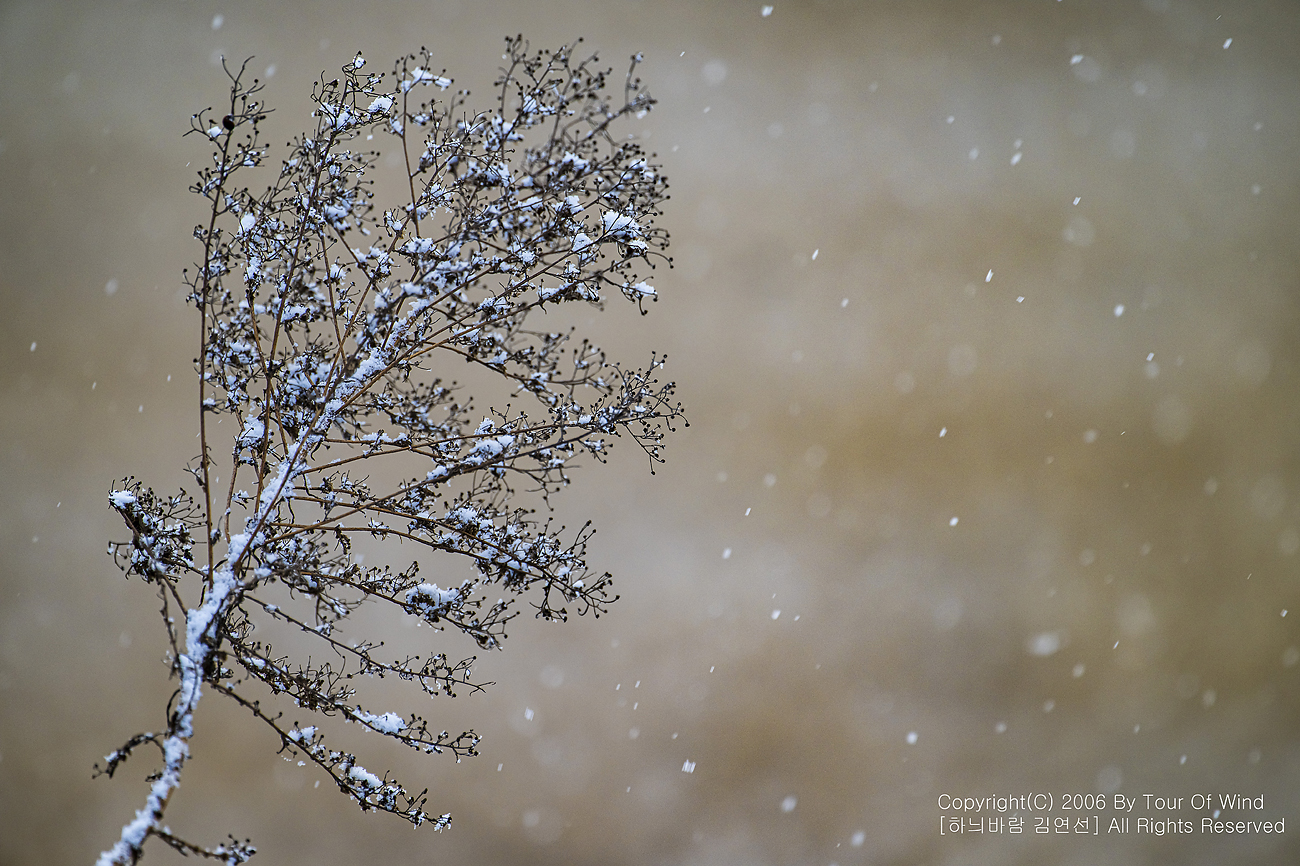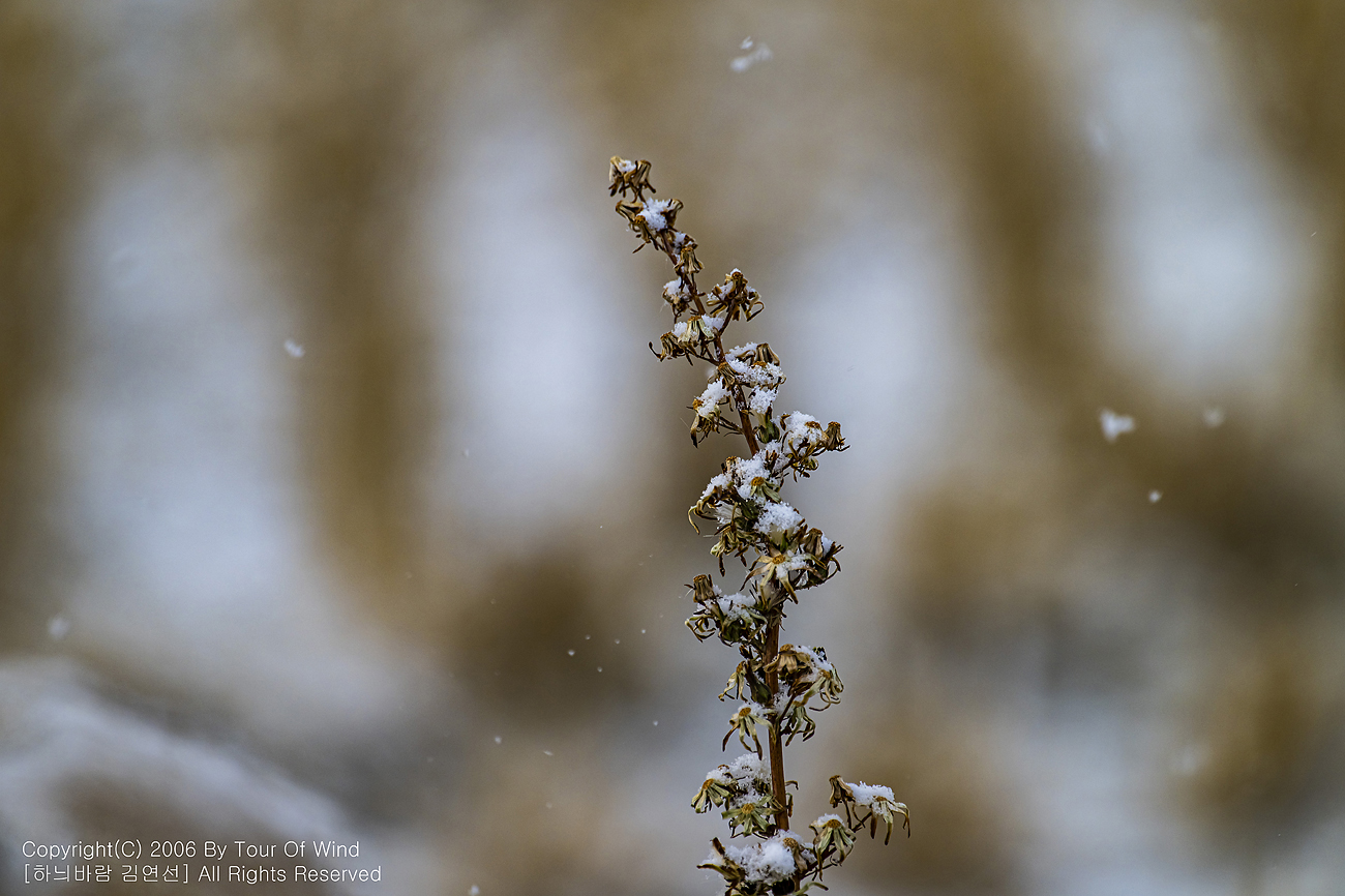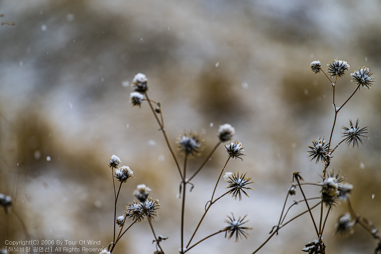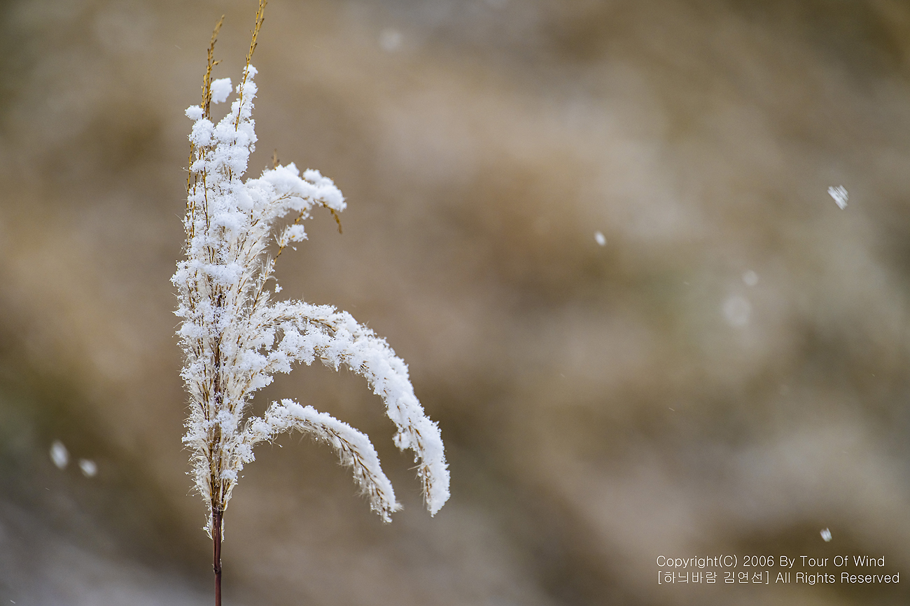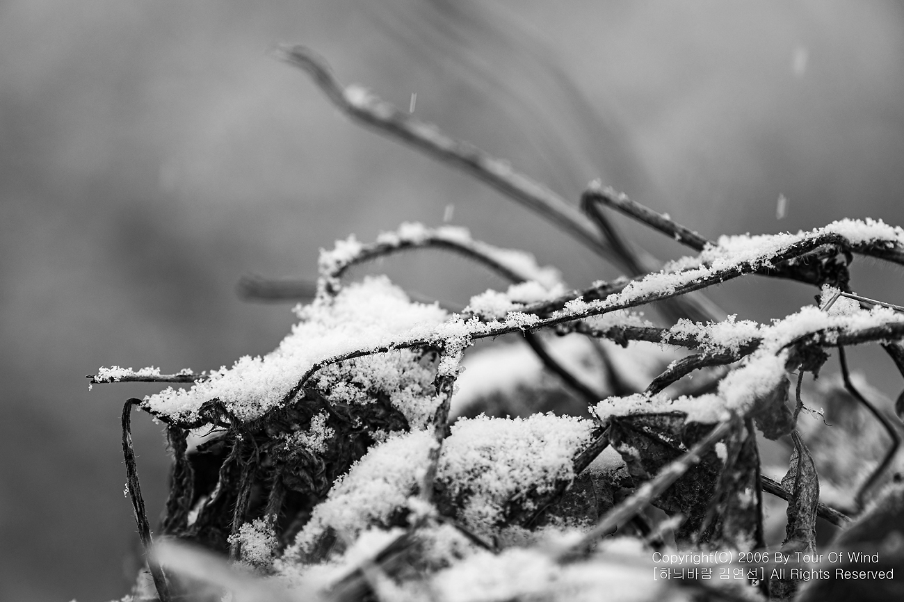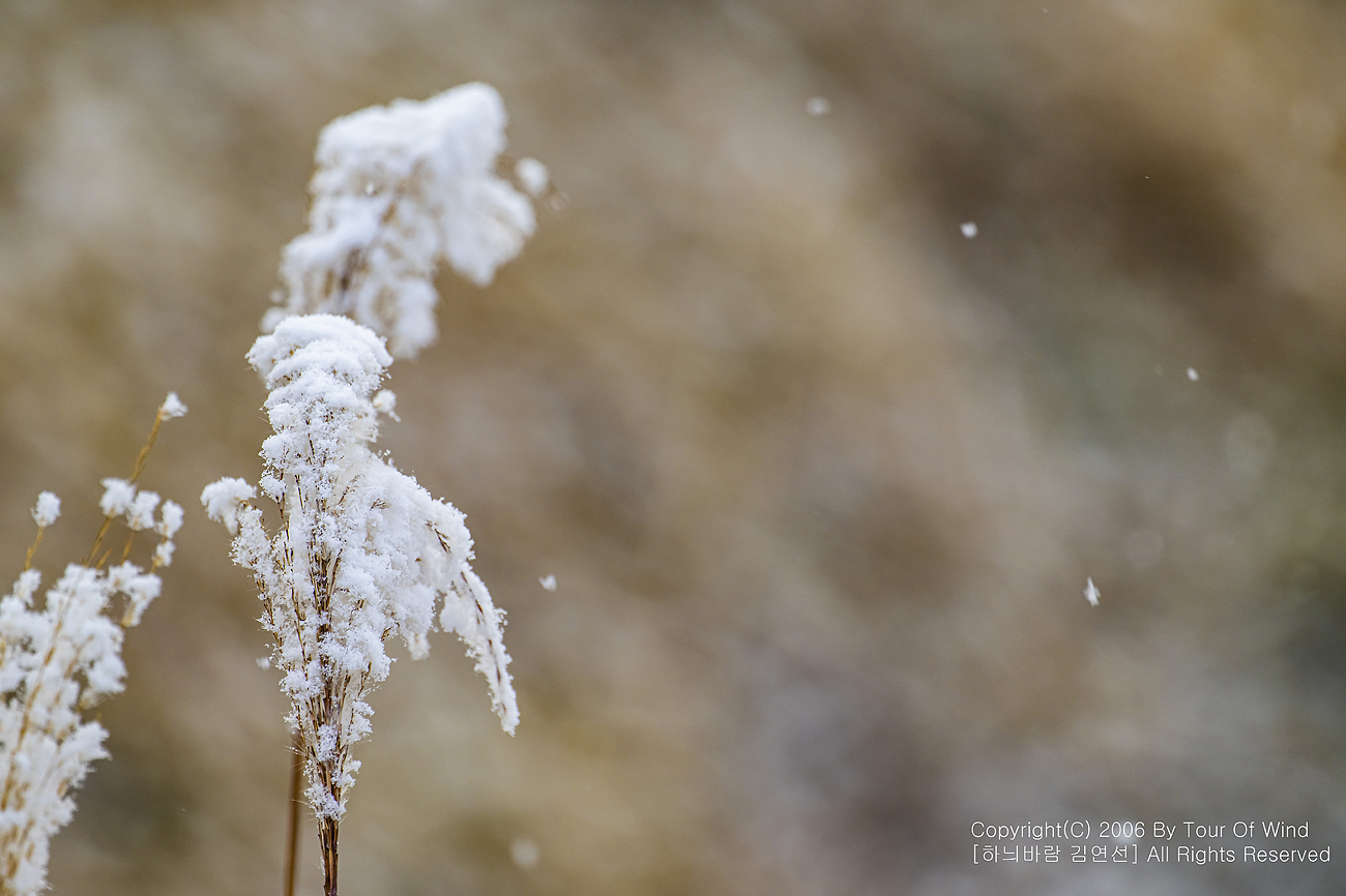 작은 풀 끝에 눈이 내려와 쌓이고,