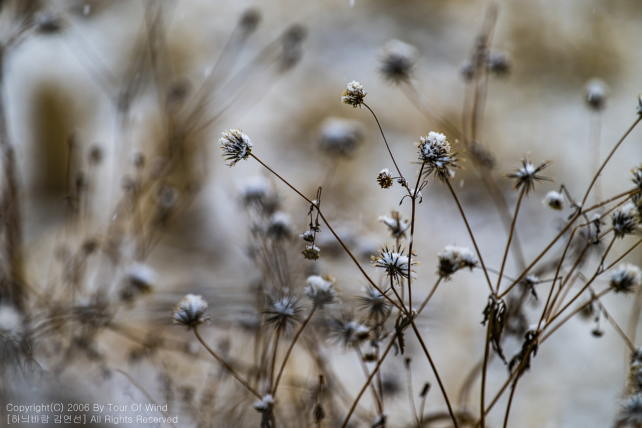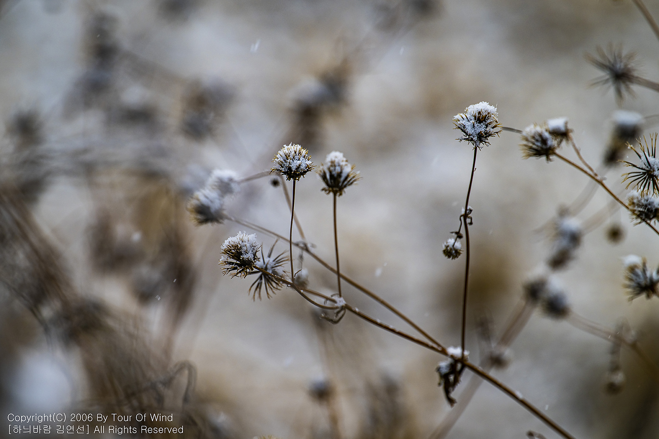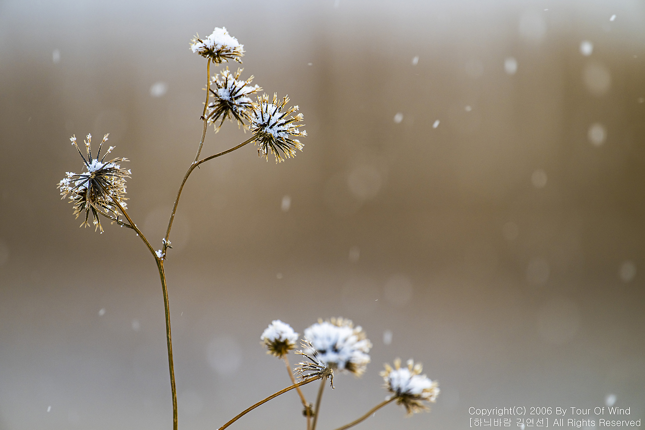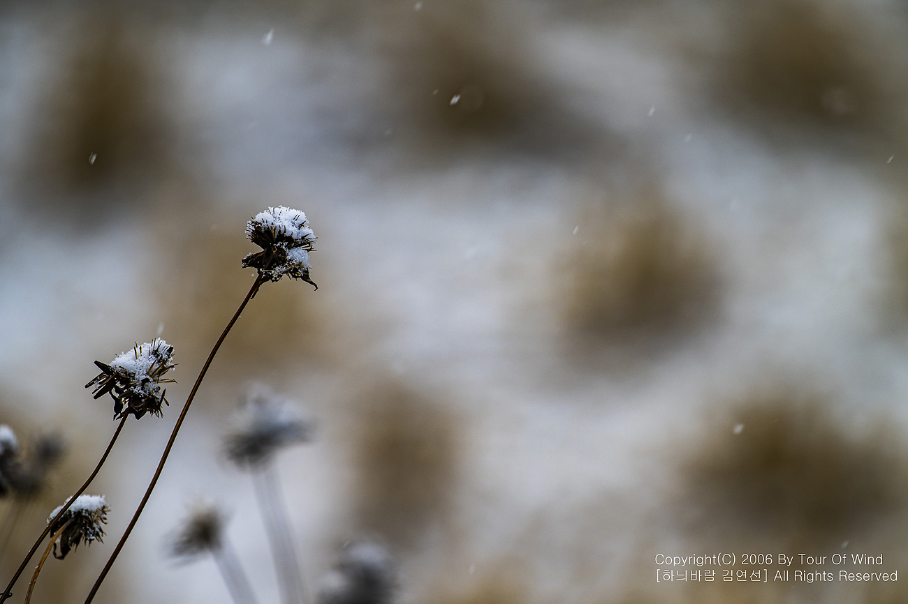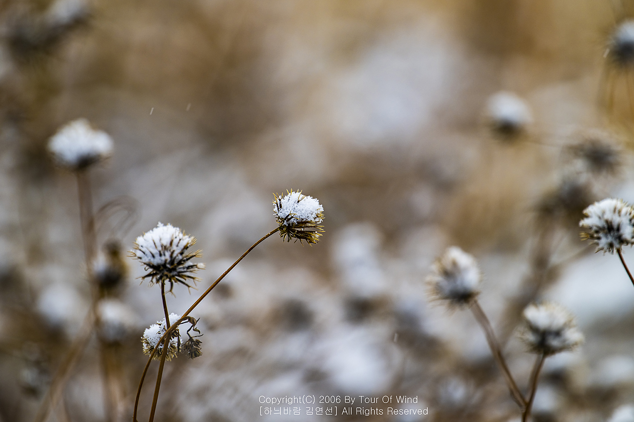 작은 풀 끝에 눈이 내려와 쌓이고,