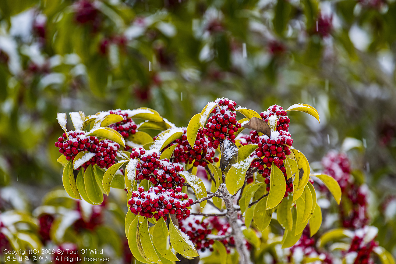붉은 열매와 흰 눈...